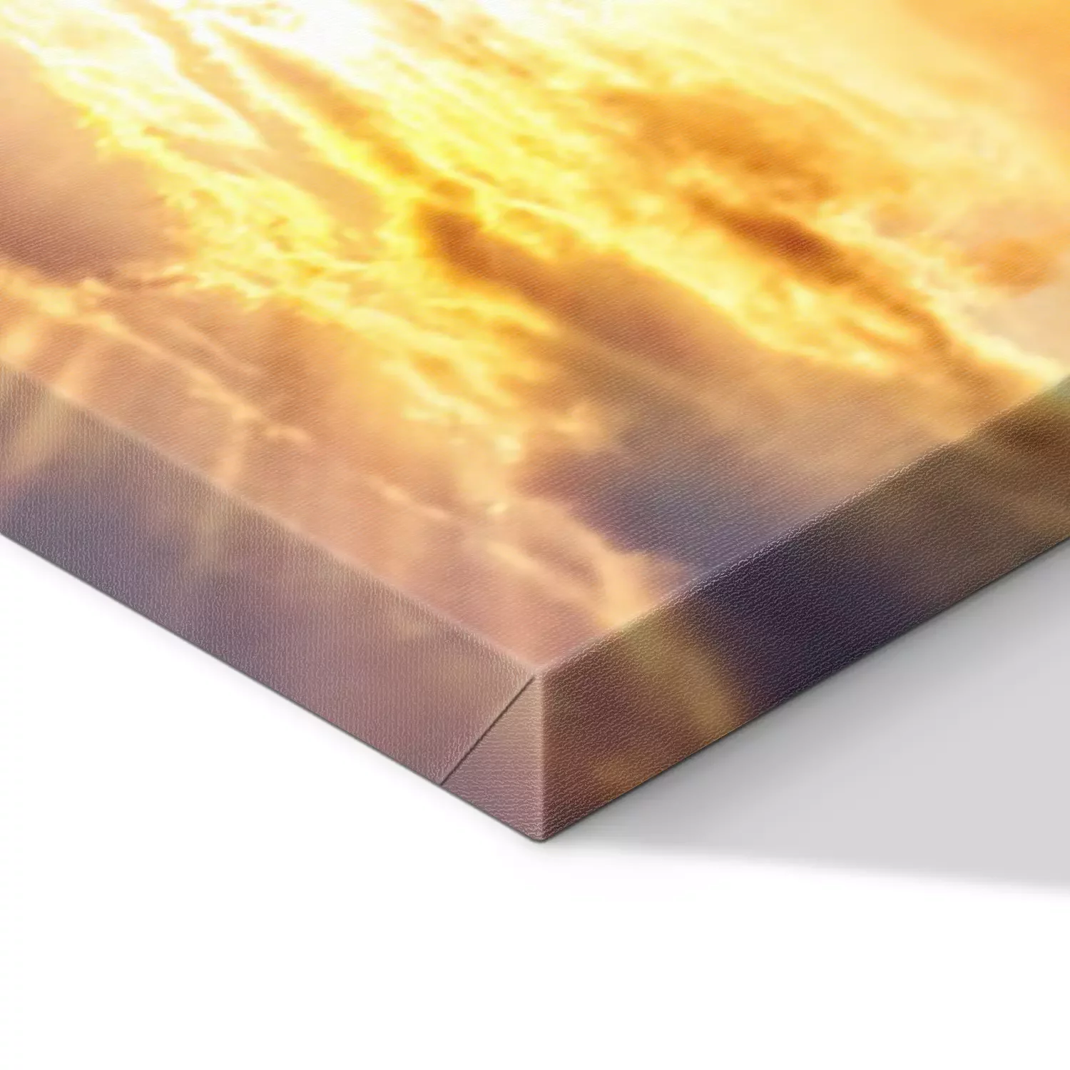 De print wordt aangebracht op hoogwaardig canvas dat op een schildersweefgetouw (spieraam) wordt gespannen. Omdat de print de zijranden bedekt, hoeft het ontwerp niet met een extra kader te worden omlijst. Wij raden ook composities aan die uit meerdere foto's bestaan en zo een coherente compositie vormen.