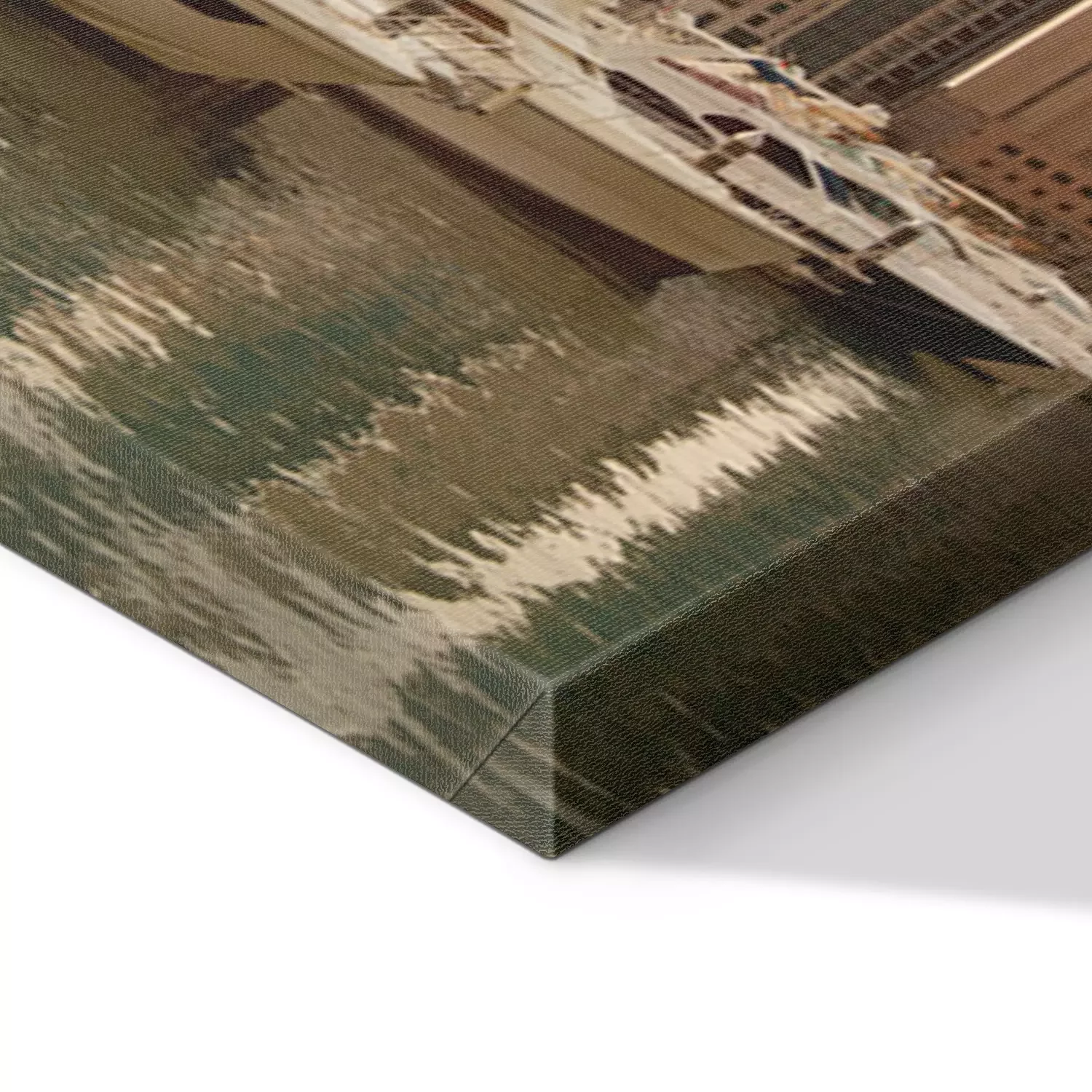 De print wordt aangebracht op hoogwaardig canvas dat op een schildersweefgetouw (spieraam) wordt gespannen. Omdat de print de zijranden bedekt, hoeft het ontwerp niet met een extra kader te worden omlijst. Wij raden ook composities aan die uit meerdere foto's bestaan en zo een coherente compositie vormen.