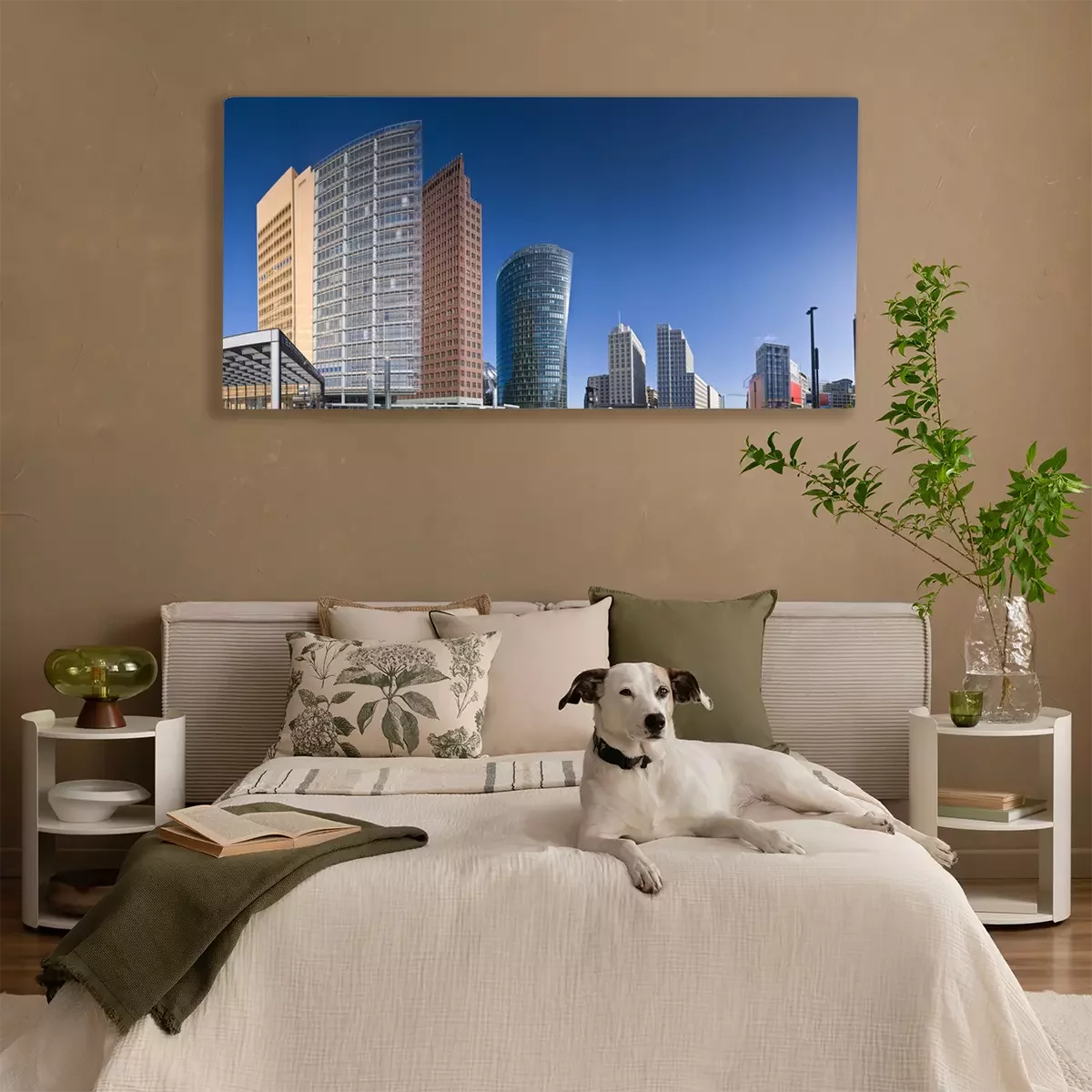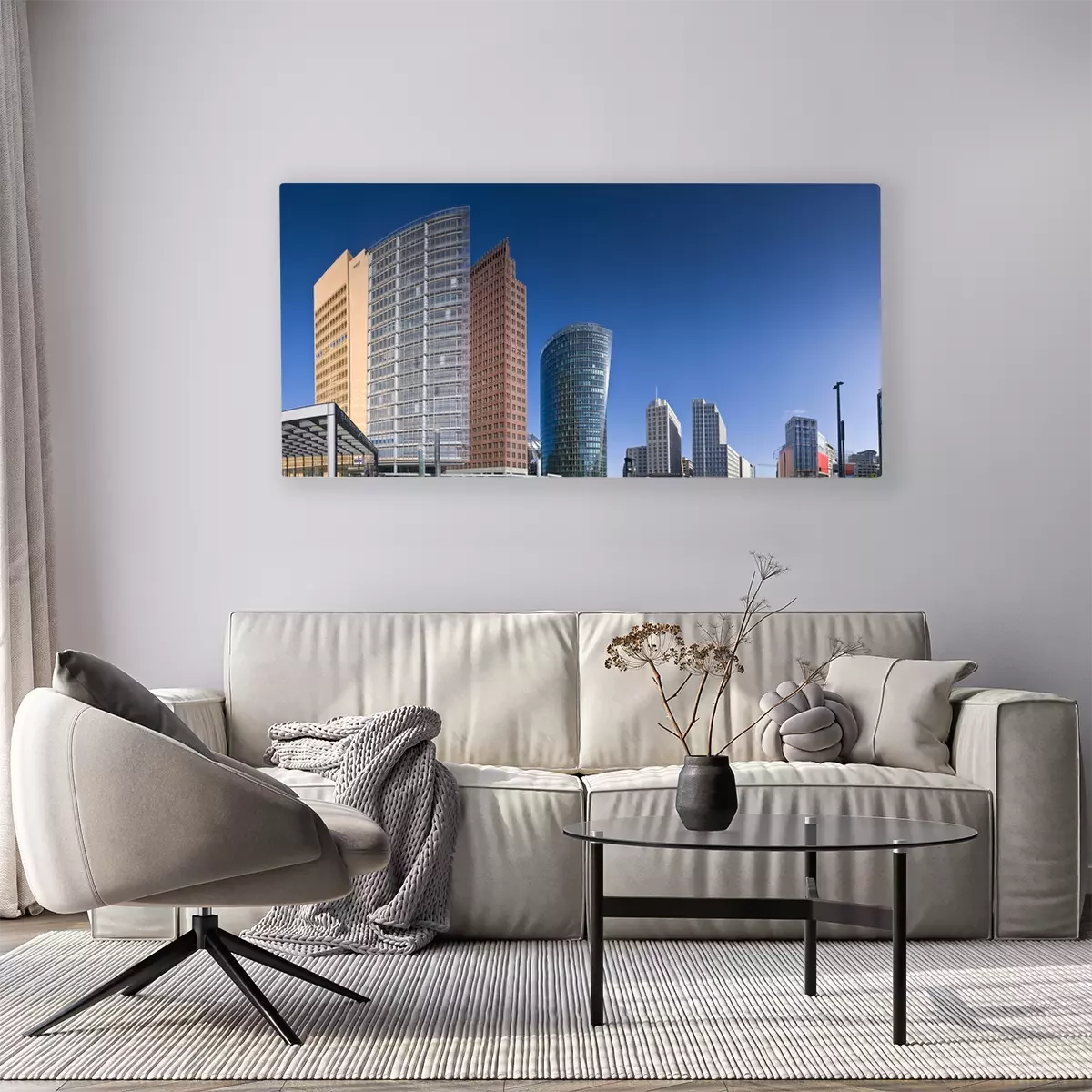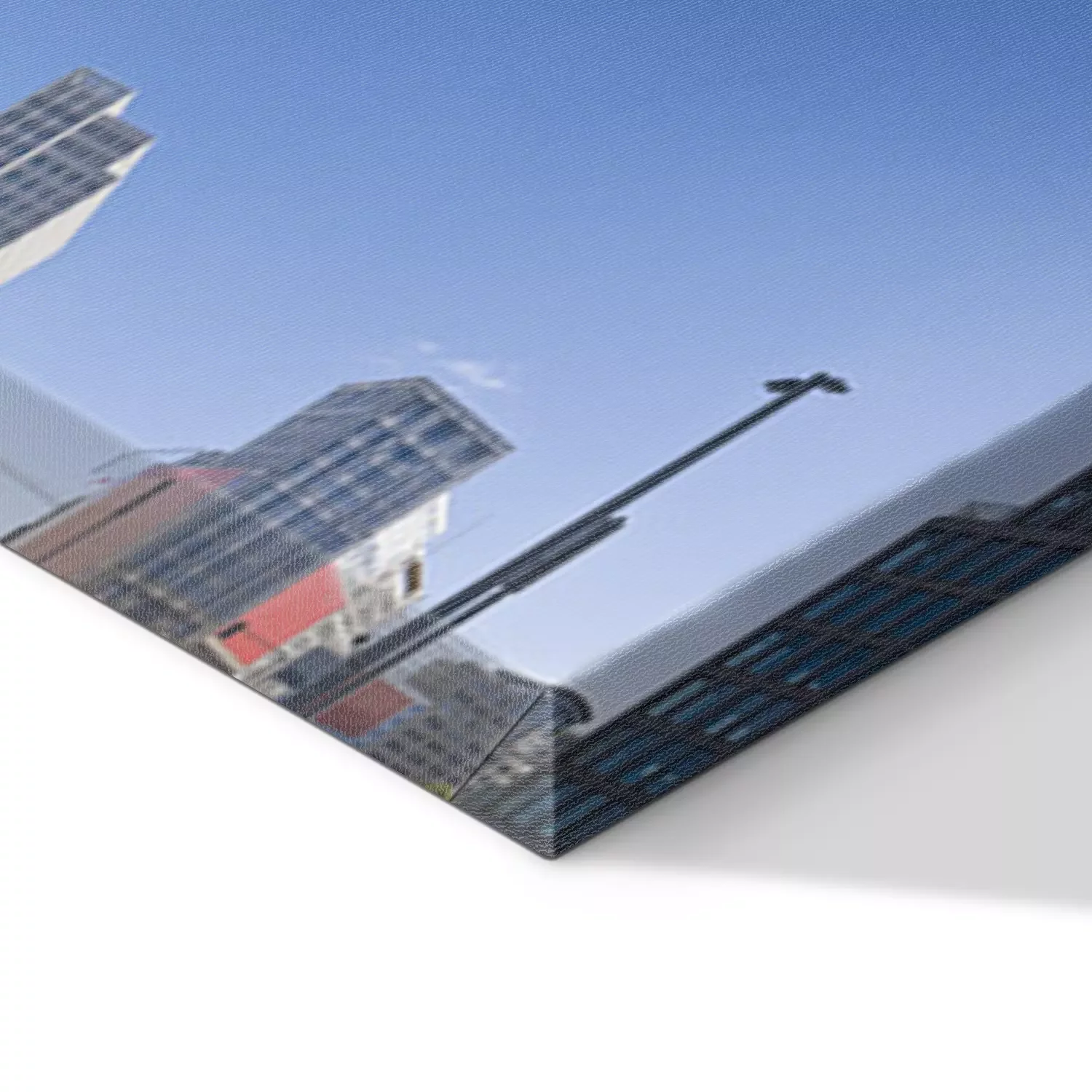 De print wordt aangebracht op hoogwaardig canvas dat op een schildersweefgetouw (spieraam) wordt gespannen. Omdat de print de zijranden bedekt, hoeft het ontwerp niet met een extra kader te worden omlijst. Wij raden ook composities aan die uit meerdere foto's bestaan en zo een coherente compositie vormen.