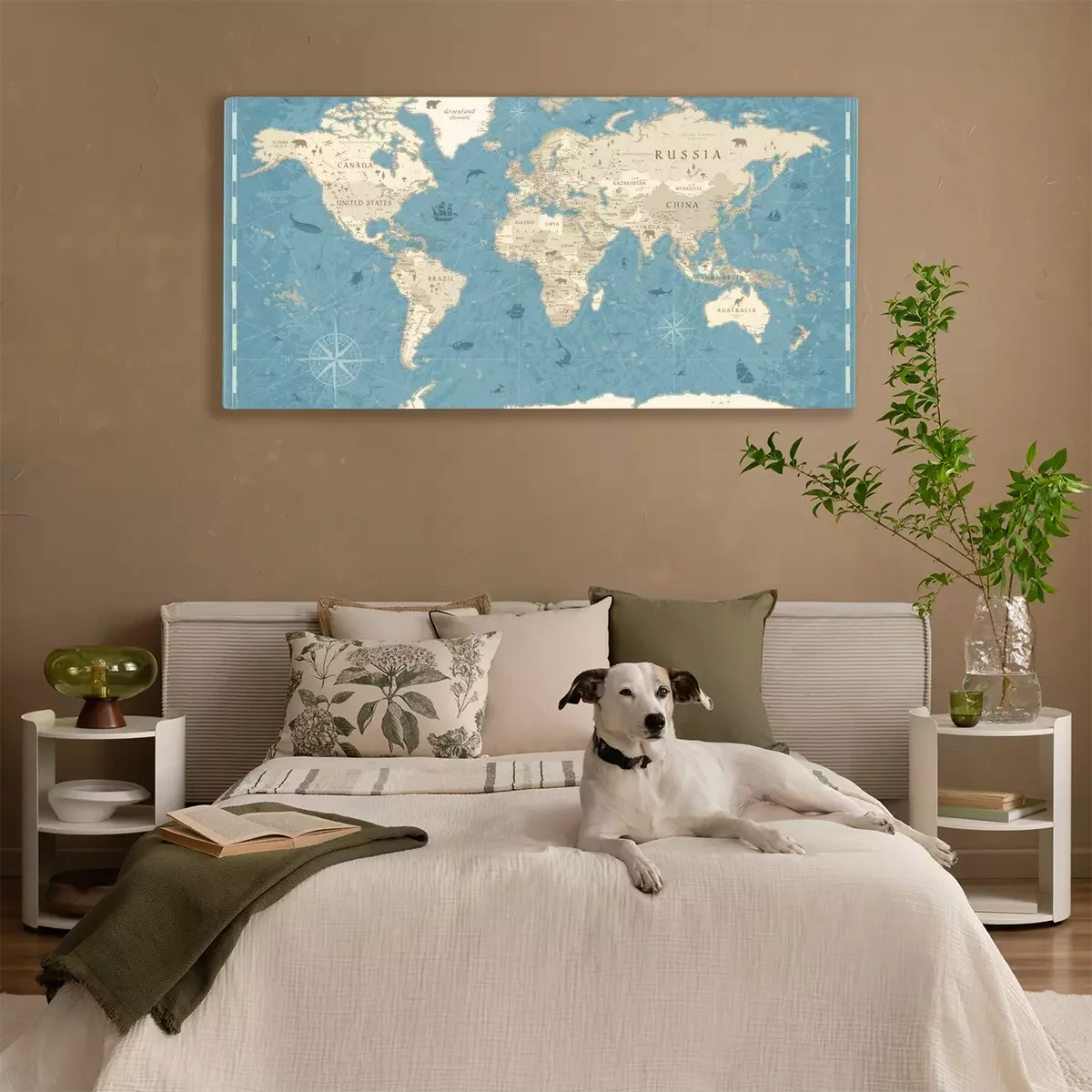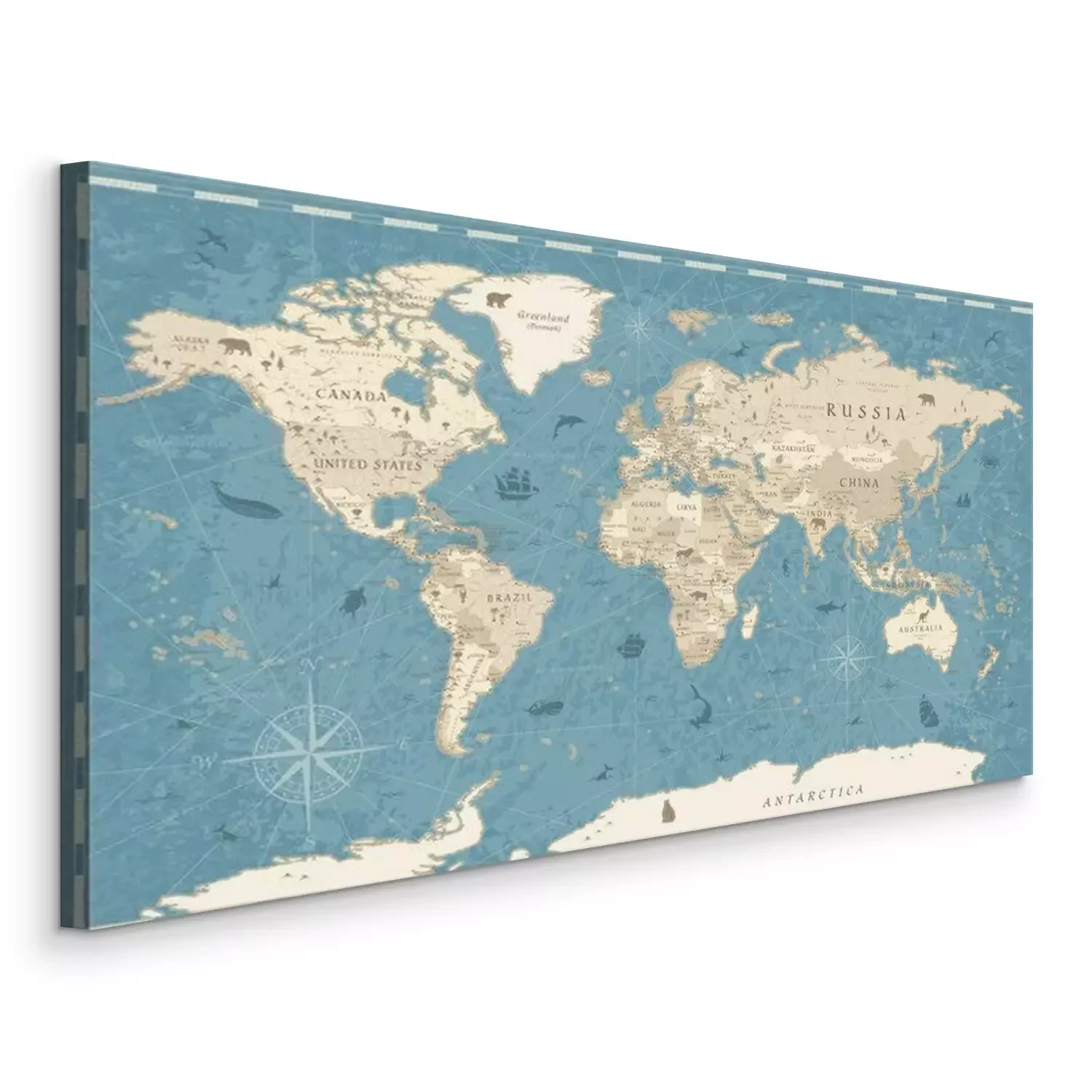 Canvas: World Map Vintage Old-Style - vector - blue and beige