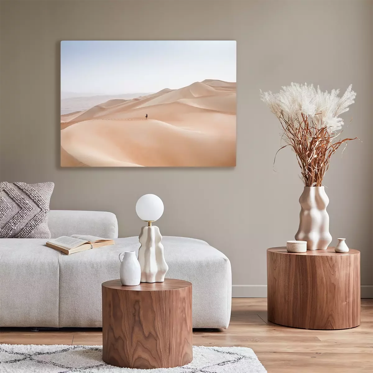 De print wordt aangebracht op hoogwaardig canvas dat op een schildersweefgetouw (spieraam) wordt gespannen. Omdat de print de zijranden bedekt, hoeft het ontwerp niet met een extra kader te worden omlijst. Wij raden ook composities aan die uit meerdere foto's bestaan en zo een coherente compositie vormen.
