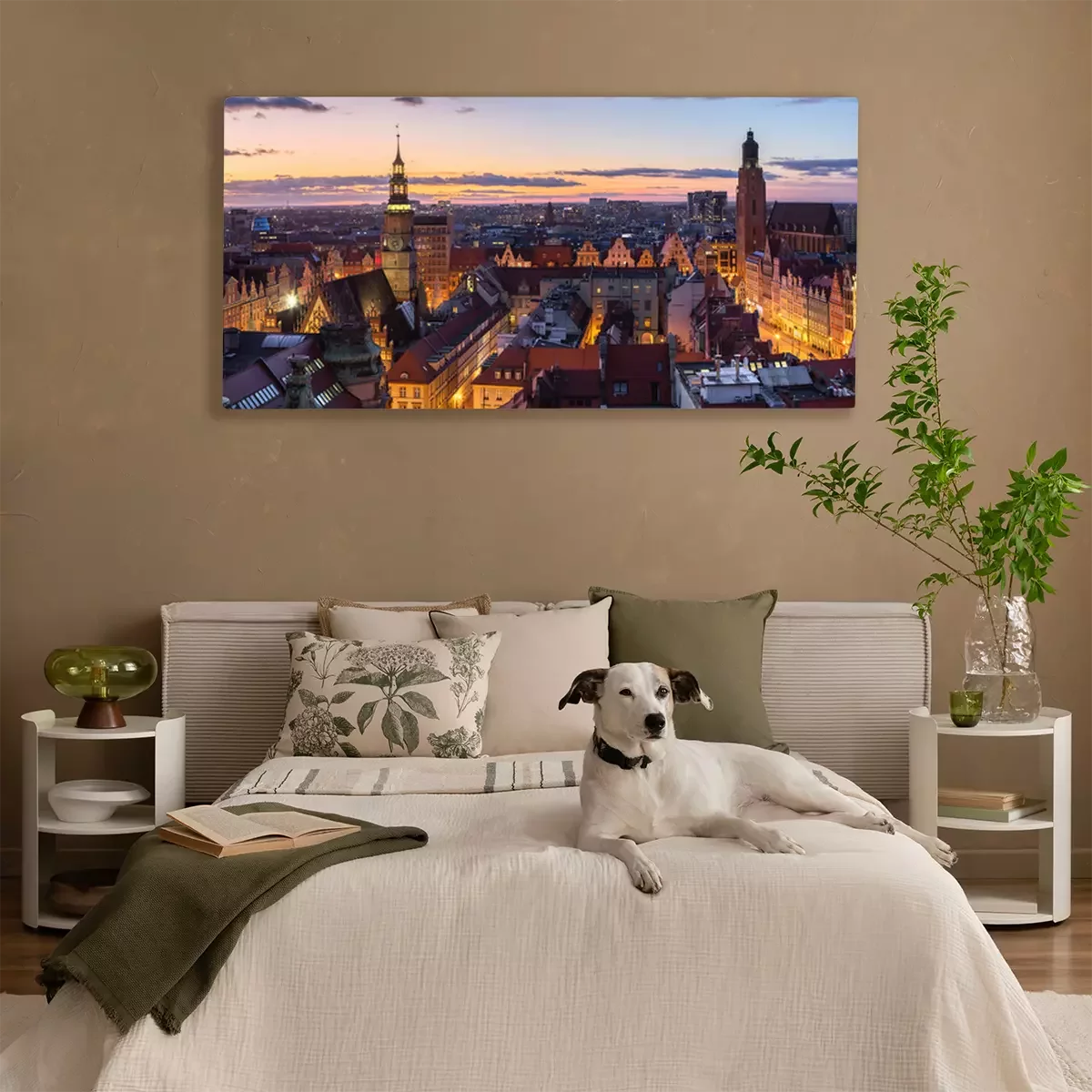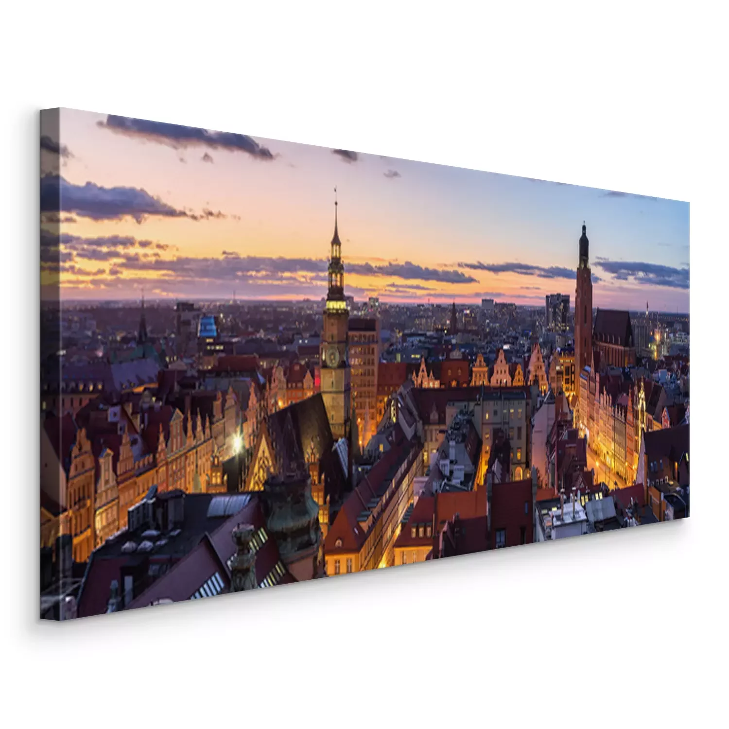 Canvas: Wroclaw, Poland. Panoramic aerial cityscape at dusk