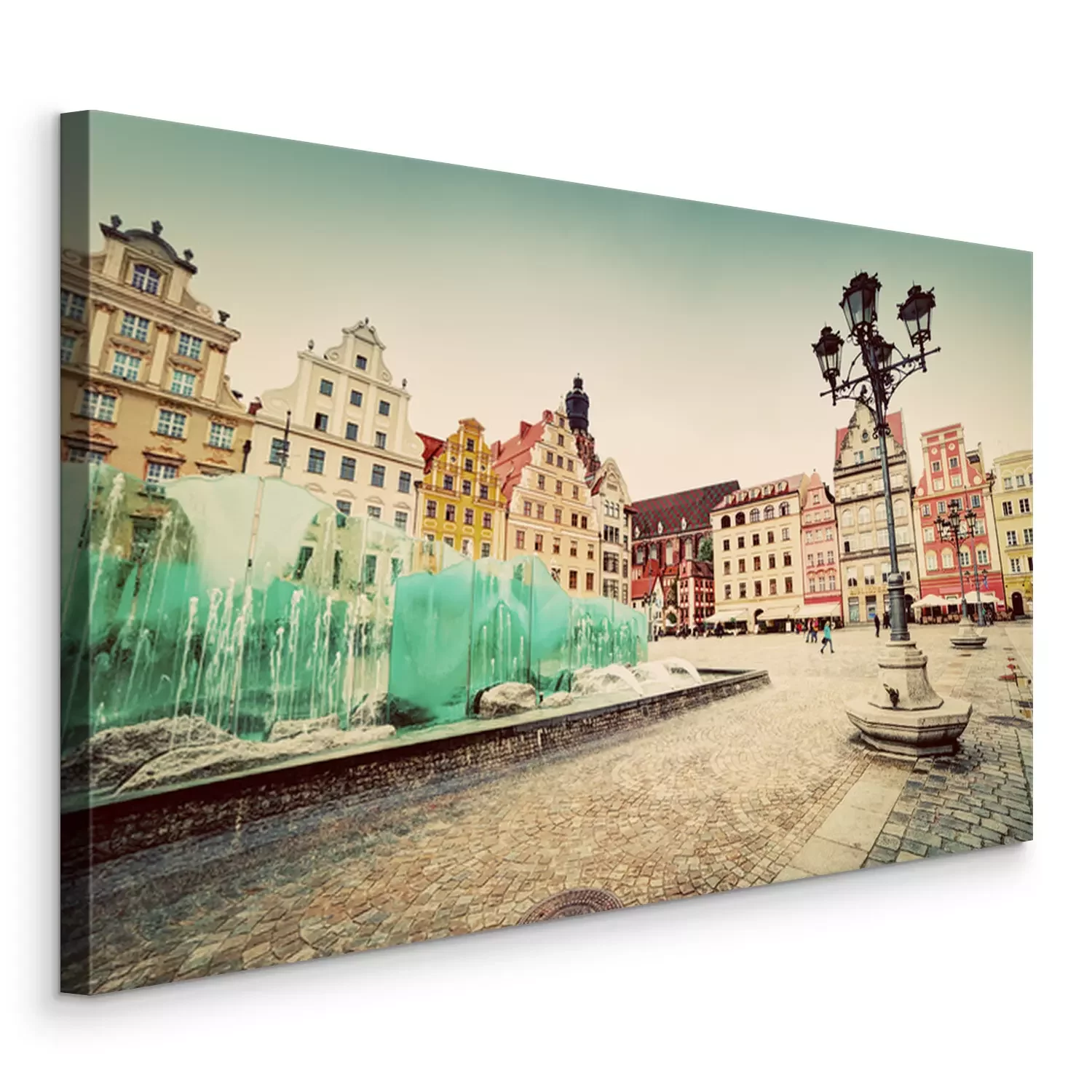 Canvas: Wroclaw, Polen. Het marktplein met de beroemde fontein