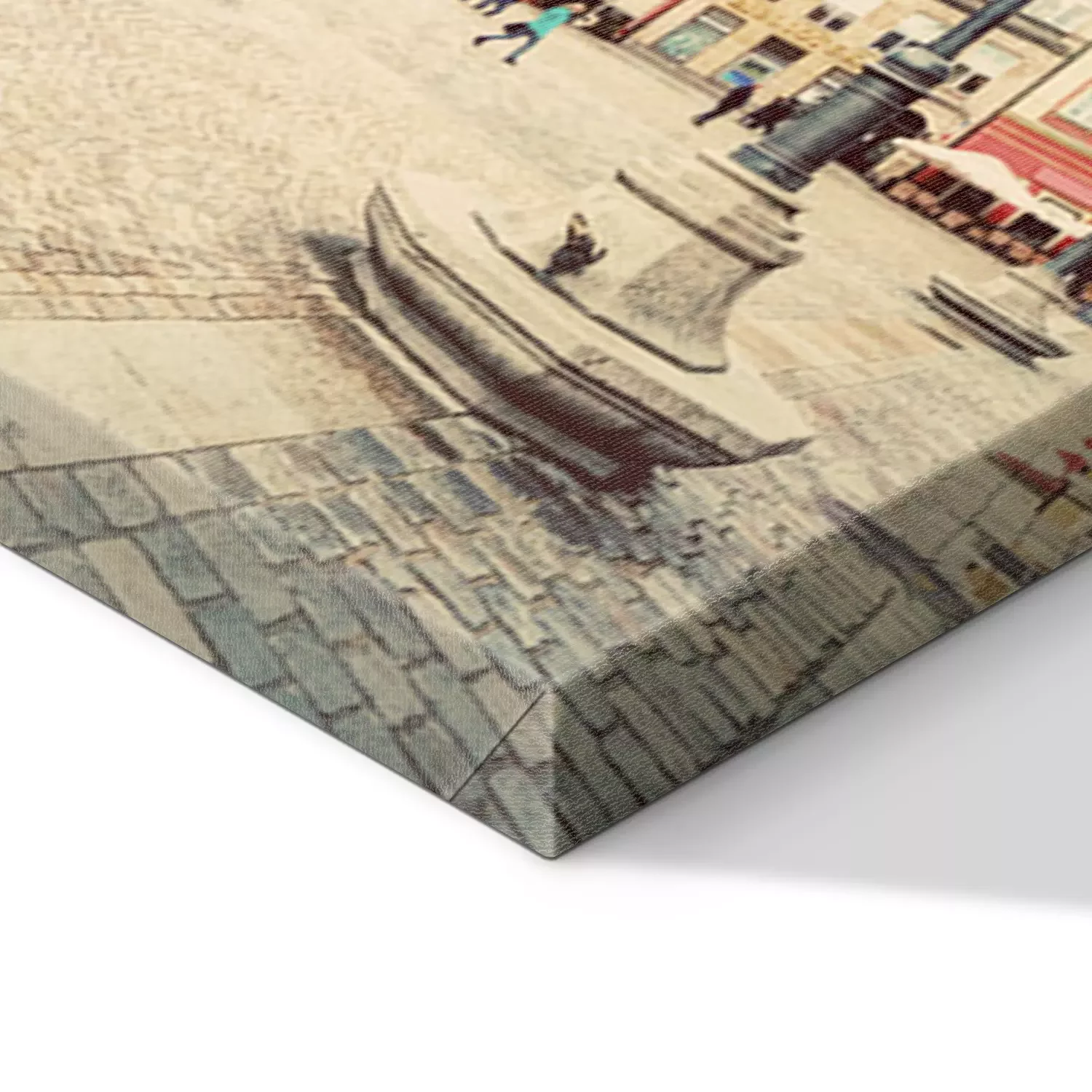 De print wordt aangebracht op hoogwaardig canvas dat op een schildersweefgetouw (spieraam) wordt gespannen. Omdat de print de zijranden bedekt, hoeft het ontwerp niet met een extra kader te worden omlijst. Wij raden ook composities aan die uit meerdere foto's bestaan en zo een coherente compositie vormen.