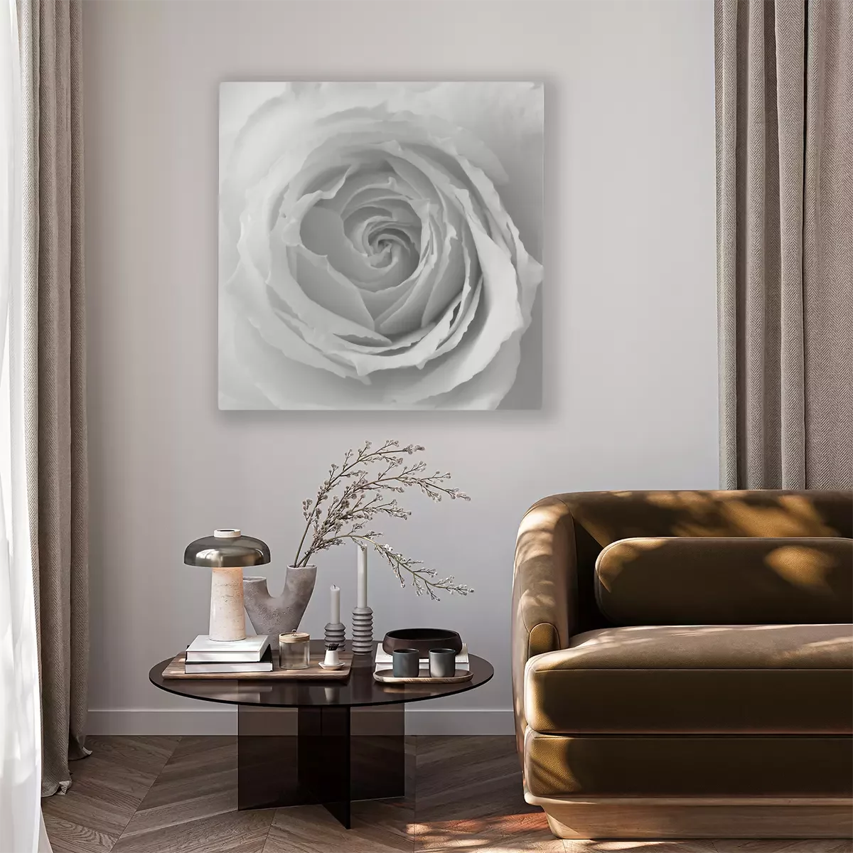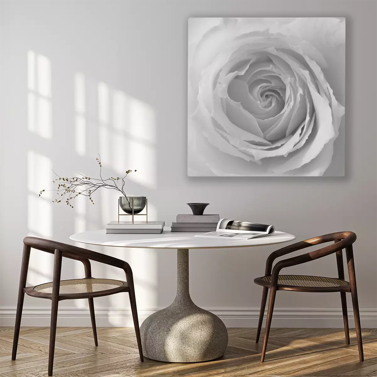 De print wordt aangebracht op hoogwaardig canvas dat op een schildersweefgetouw (spieraam) wordt gespannen. Omdat de print de zijranden bedekt, hoeft het ontwerp niet met een extra kader te worden omlijst. Wij raden ook composities aan die uit meerdere foto's bestaan en zo een coherente compositie vormen.