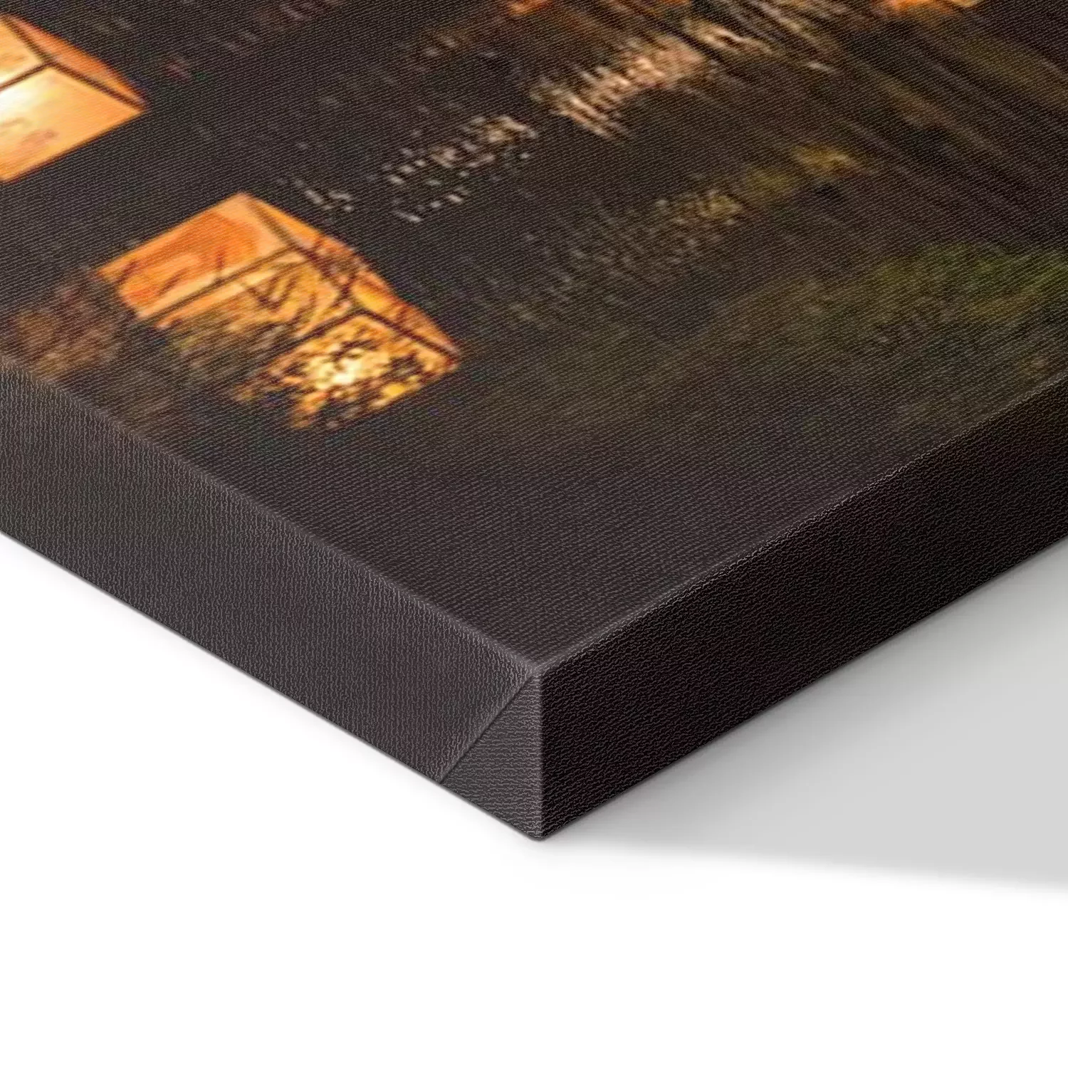 De print wordt aangebracht op hoogwaardig canvas dat op een schildersweefgetouw (spieraam) wordt gespannen. Omdat de print de zijranden bedekt, hoeft het ontwerp niet met een extra kader te worden omlijst. Wij raden ook composities aan die uit meerdere foto's bestaan en zo een coherente compositie vormen.