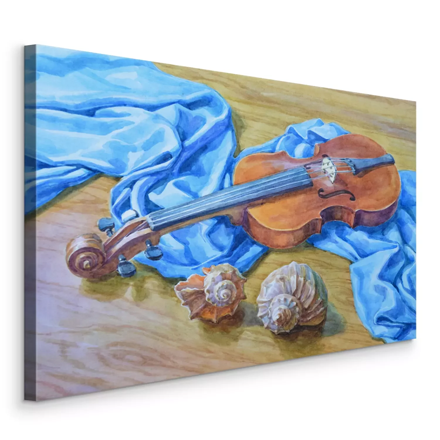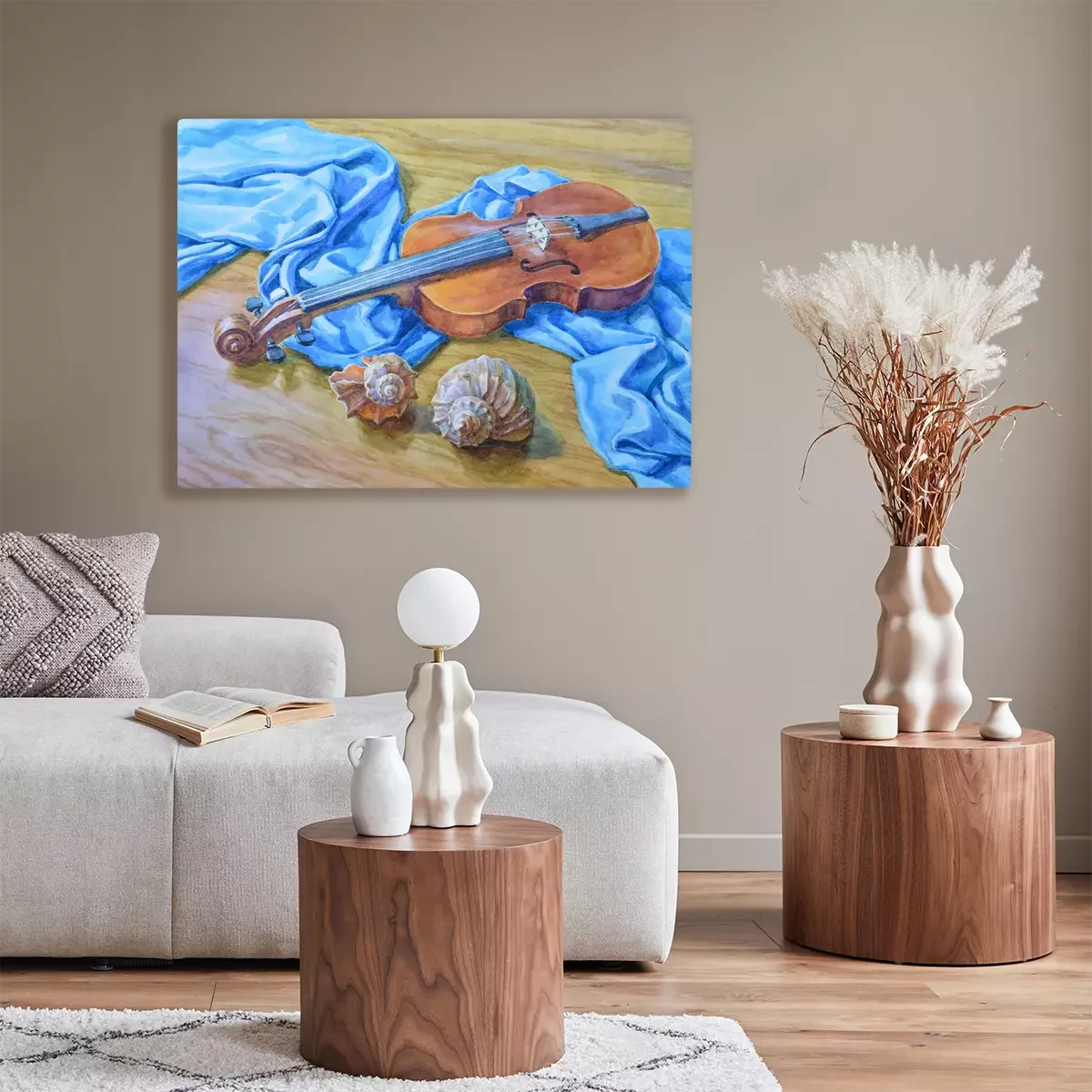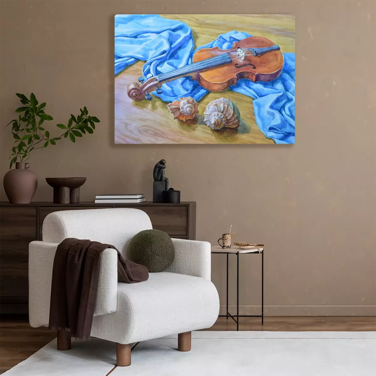 Canvas Натюрморт, акварель. Скрипка и морские раковины.