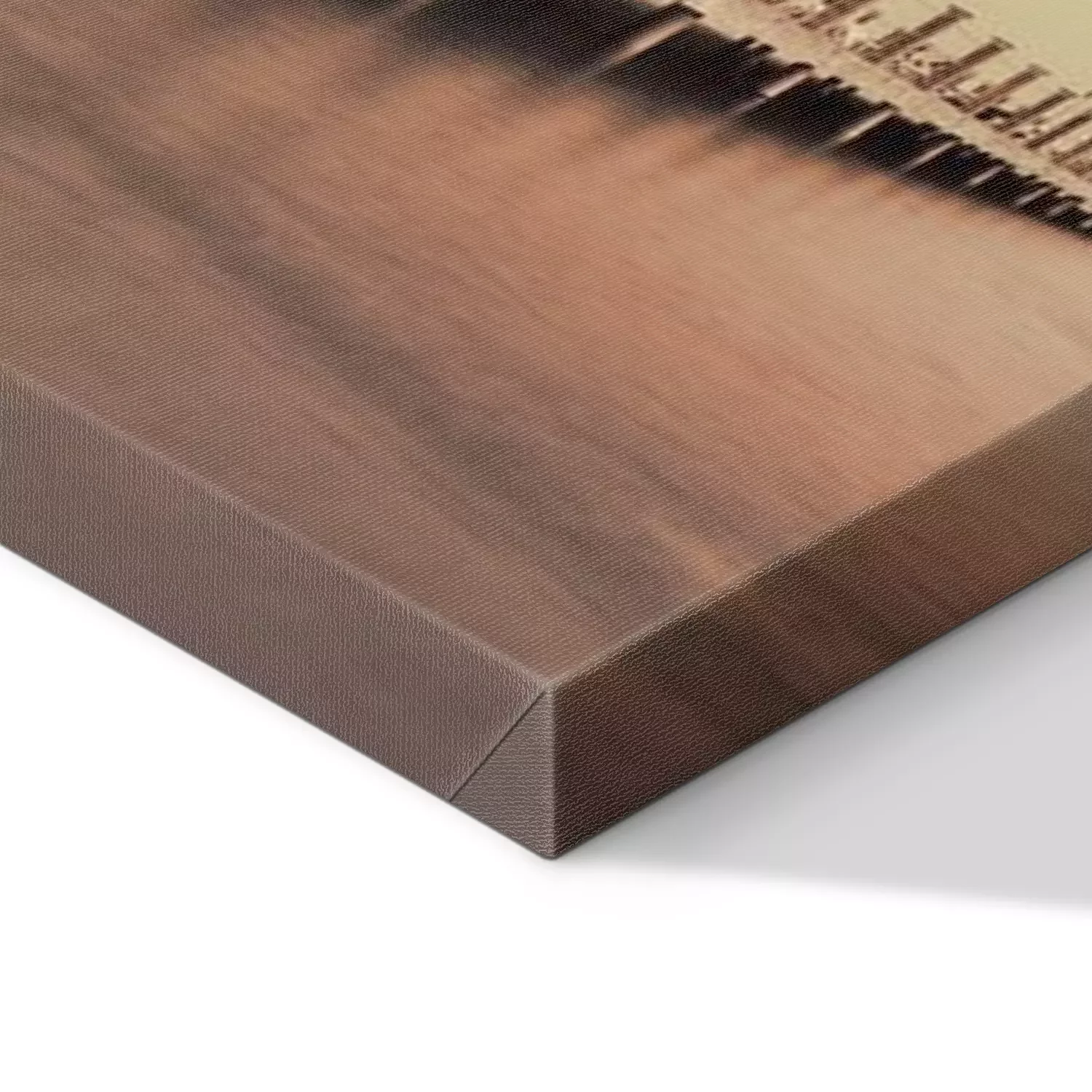 De print wordt aangebracht op hoogwaardig canvas dat op een schildersweefgetouw (spieraam) wordt gespannen. Omdat de print de zijranden bedekt, hoeft het ontwerp niet met een extra kader te worden omlijst. Wij raden ook composities aan die uit meerdere foto's bestaan en zo een coherente compositie vormen.
