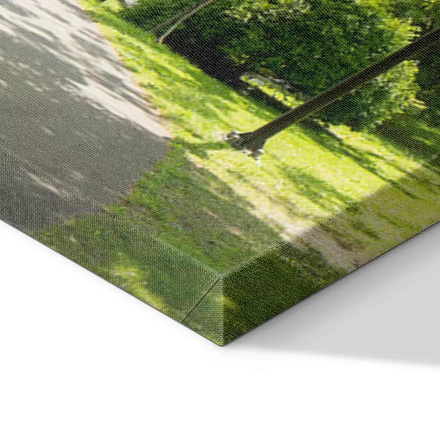 De print wordt aangebracht op hoogwaardig canvas dat op een schildersweefgetouw (spieraam) wordt gespannen. Omdat de print de zijranden bedekt, hoeft het ontwerp niet met een extra kader te worden omlijst. Wij raden ook composities aan die uit meerdere foto's bestaan en zo een coherente compositie vormen.