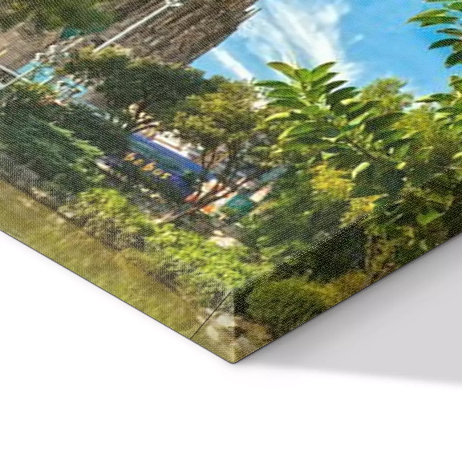 De print wordt aangebracht op hoogwaardig canvas dat op een schildersweefgetouw (spieraam) wordt gespannen. Omdat de print de zijranden bedekt, hoeft het ontwerp niet met een extra kader te worden omlijst. Wij raden ook composities aan die uit meerdere foto's bestaan en zo een coherente compositie vormen.