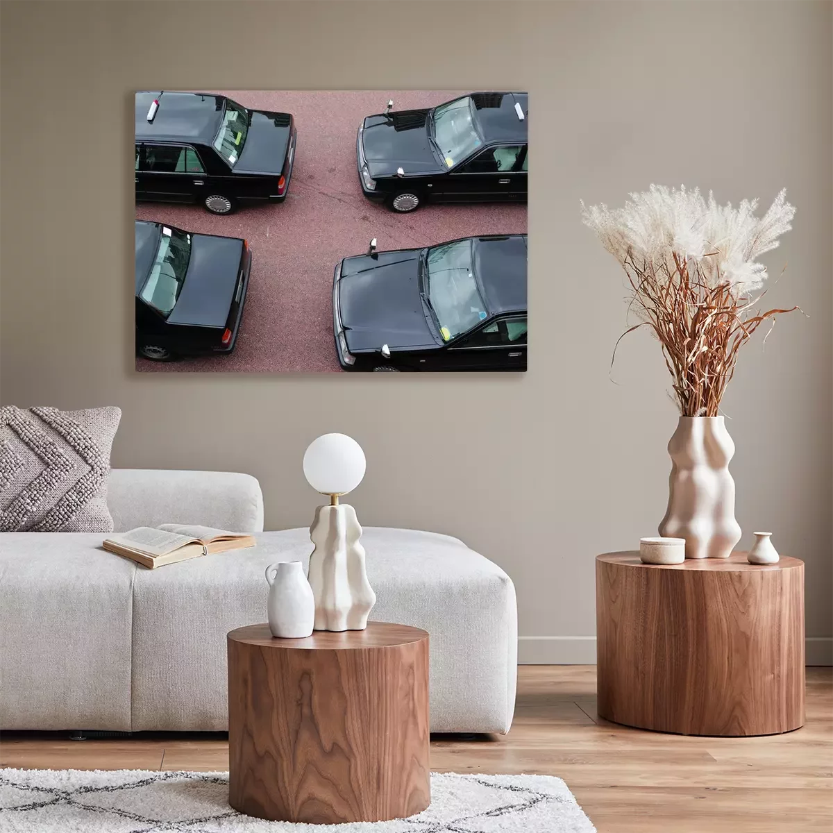 De print wordt aangebracht op hoogwaardig canvas dat op een schildersweefgetouw (spieraam) wordt gespannen. Omdat de print de zijranden bedekt, hoeft het ontwerp niet met een extra kader te worden omlijst. Wij raden ook composities aan die uit meerdere foto's bestaan en zo een coherente compositie vormen.