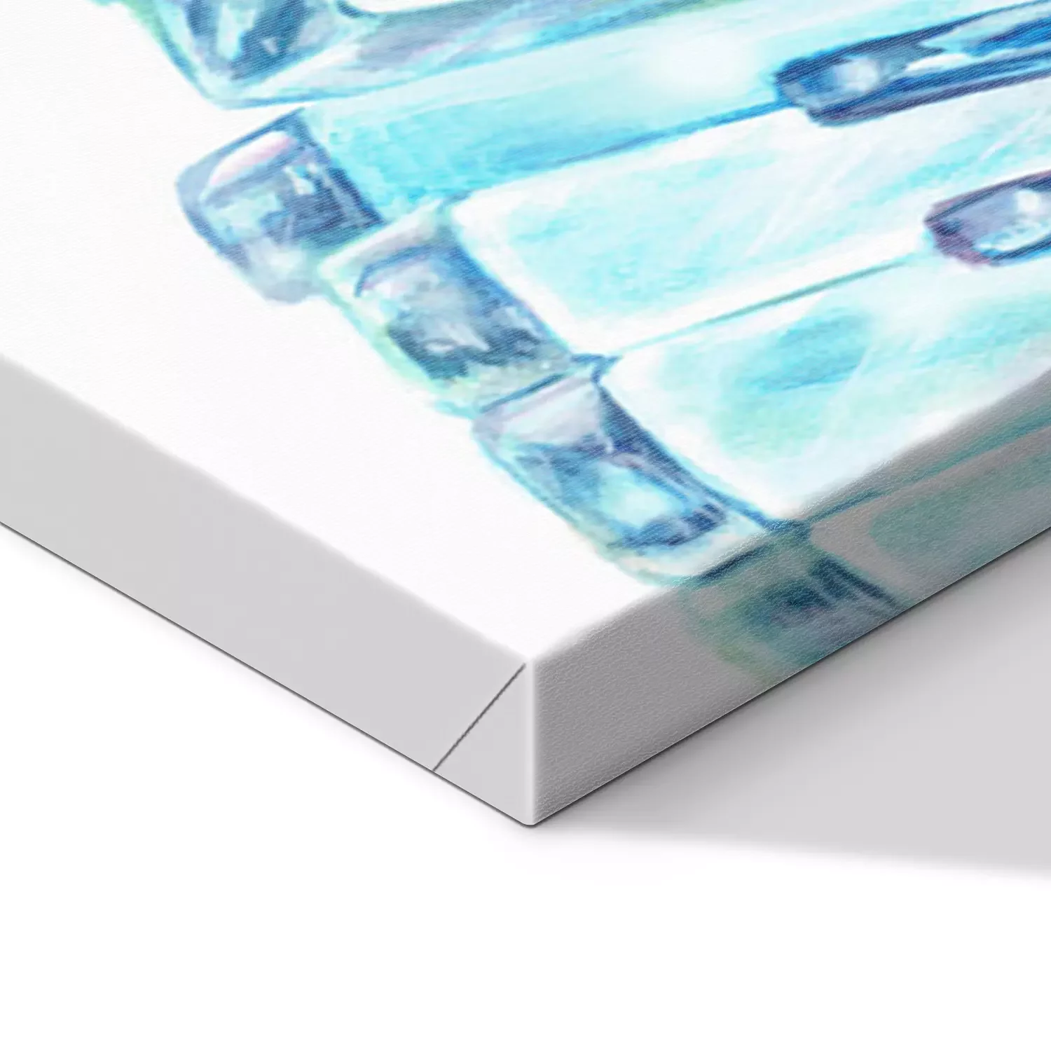 De print wordt aangebracht op hoogwaardig canvas dat op een schildersweefgetouw (spieraam) wordt gespannen. Omdat de print de zijranden bedekt, hoeft het ontwerp niet met een extra kader te worden omlijst. Wij raden ook composities aan die uit meerdere foto's bestaan en zo een coherente compositie vormen.