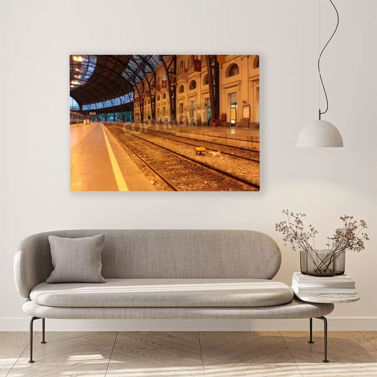 Canvas Track en perrons. Station Frankrijk, in Barcelona, ​​Catalonië, Spanje. Photo taken on: May 20nd, 2009