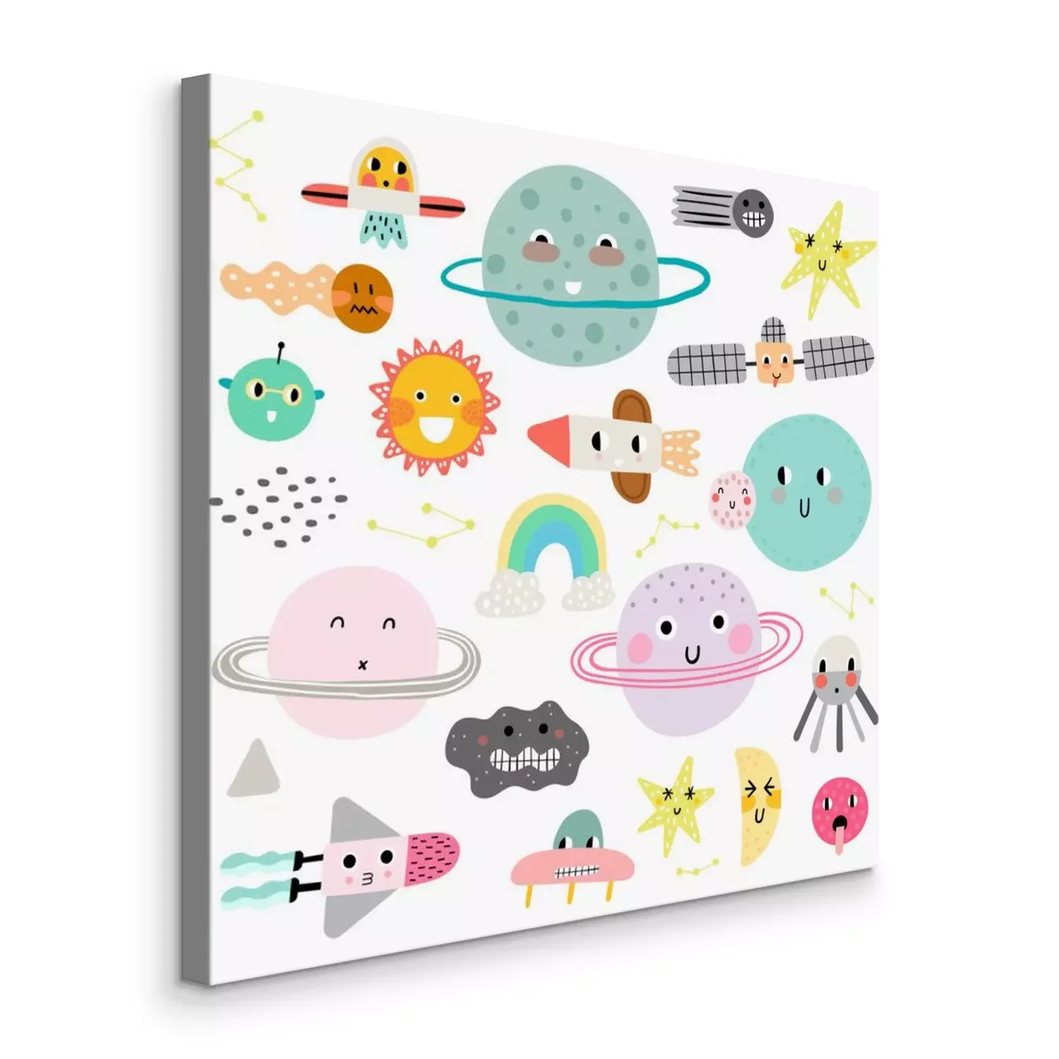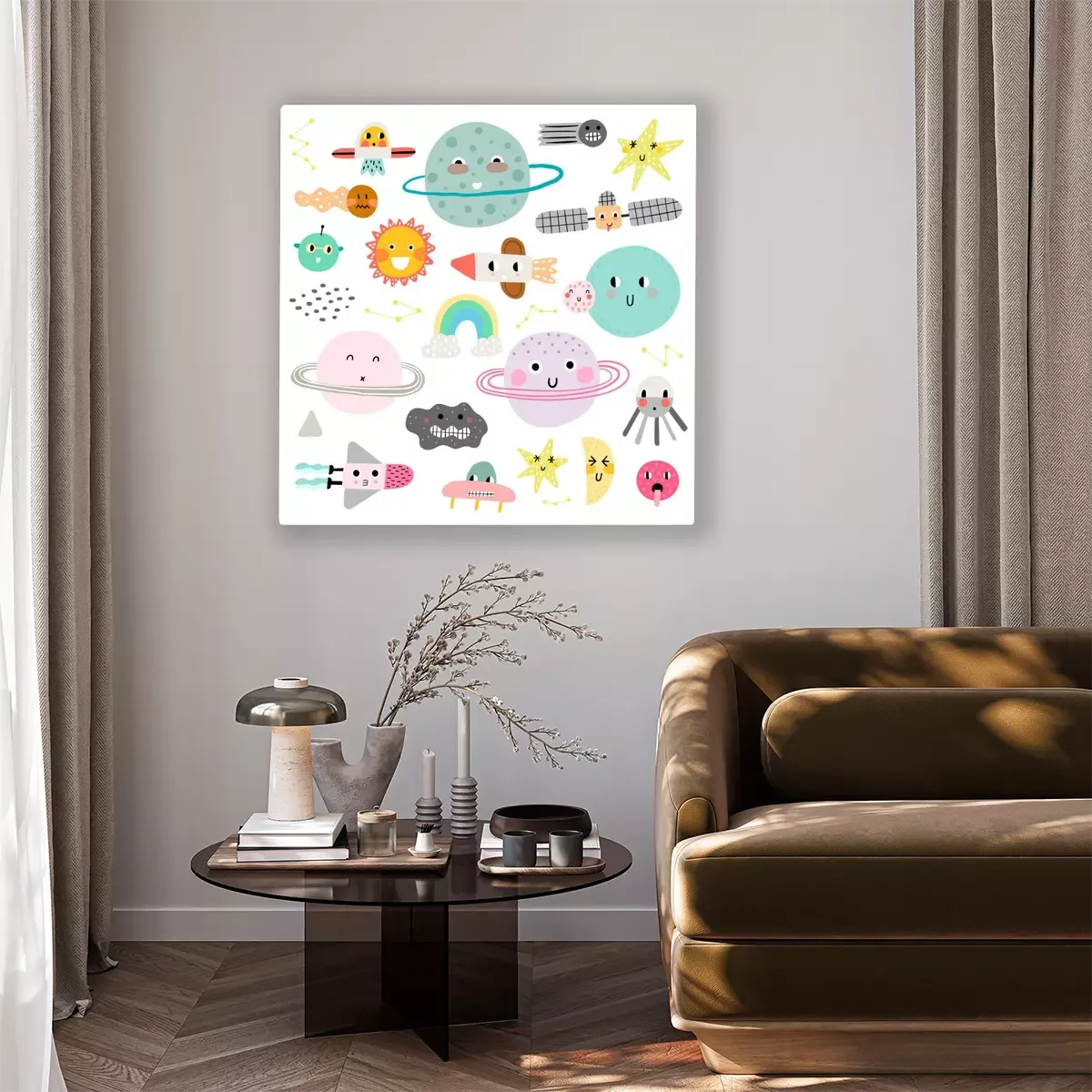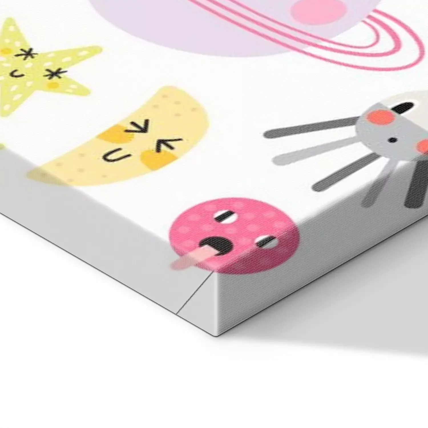 Canvas: Сute set of cosmic elements. Kawaii moon, sun and planets vector illustration for kids. Isolated design elements for children.