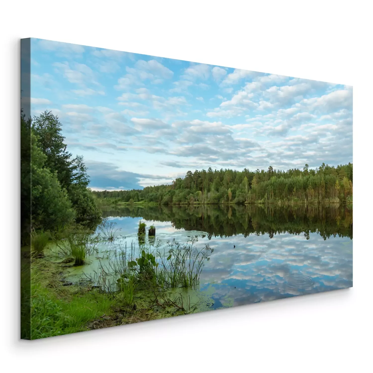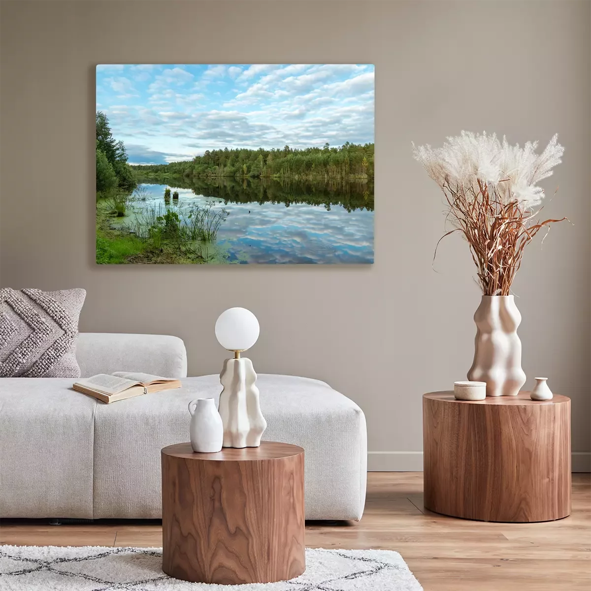 Canvas летний пейзаж с озером и отражением леса в воде, Россия, Урал