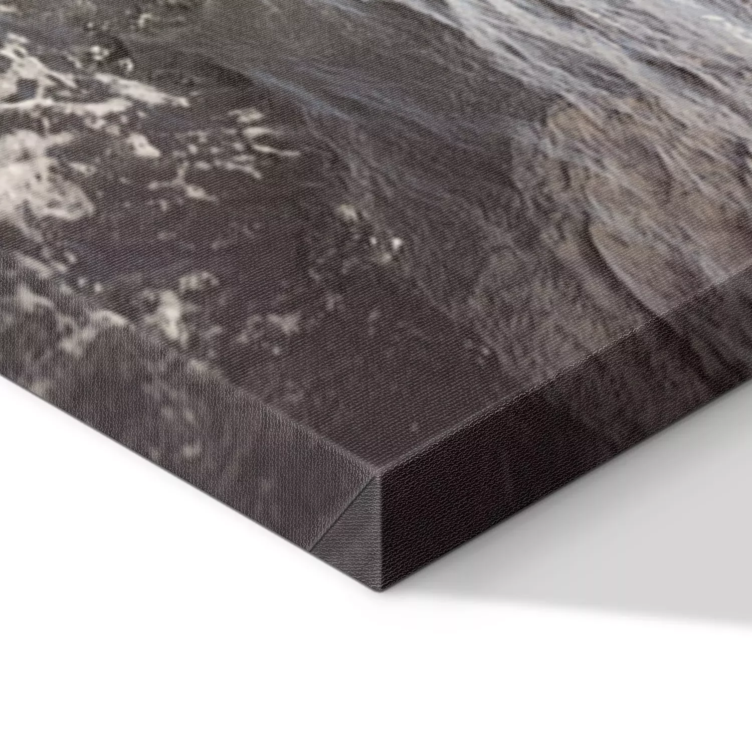 De print wordt aangebracht op hoogwaardig canvas dat op een schildersweefgetouw (spieraam) wordt gespannen. Omdat de print de zijranden bedekt, hoeft het ontwerp niet met een extra kader te worden omlijst. Wij raden ook composities aan die uit meerdere foto's bestaan en zo een coherente compositie vormen.