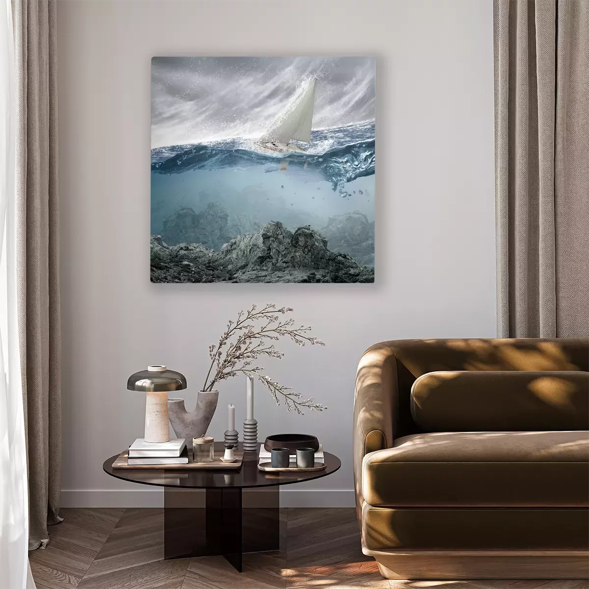 De print wordt aangebracht op hoogwaardig canvas dat op een schildersweefgetouw (spieraam) wordt gespannen. Omdat de print de zijranden bedekt, hoeft het ontwerp niet met een extra kader te worden omlijst. Wij raden ook composities aan die uit meerdere foto's bestaan en zo een coherente compositie vormen.