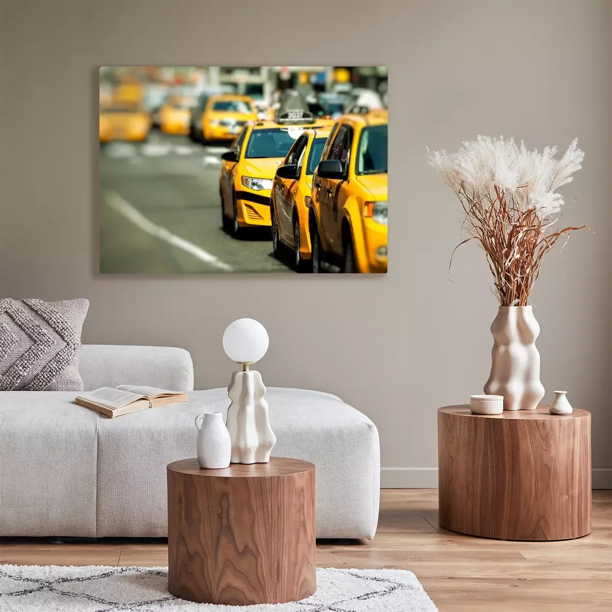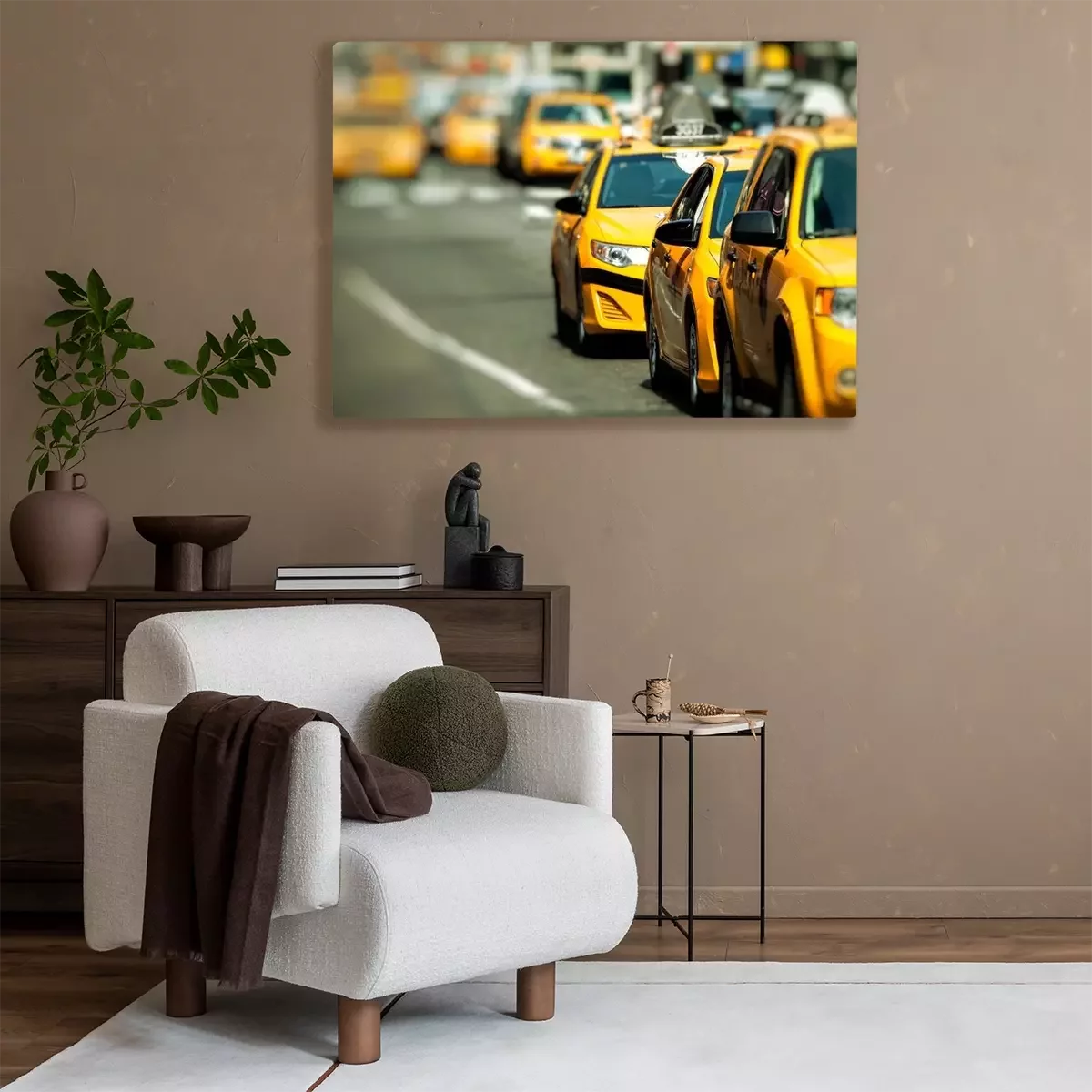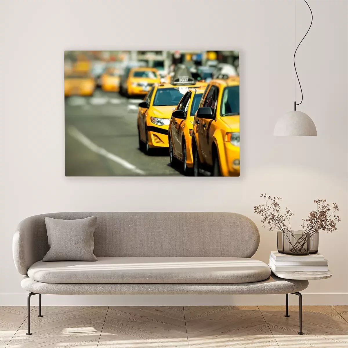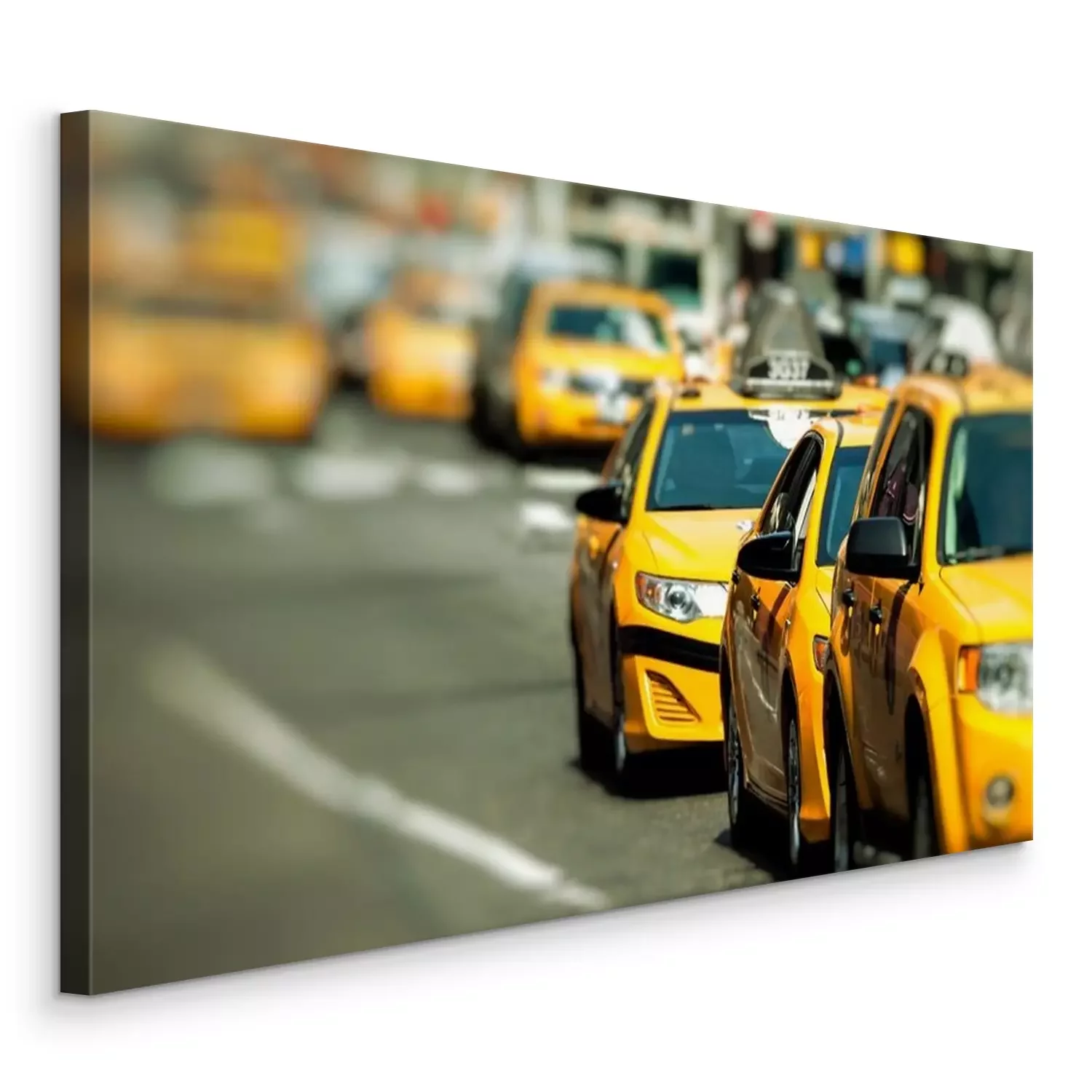 Canvas Yellow Cab snelheden door Times Square in New York, NY, USA.