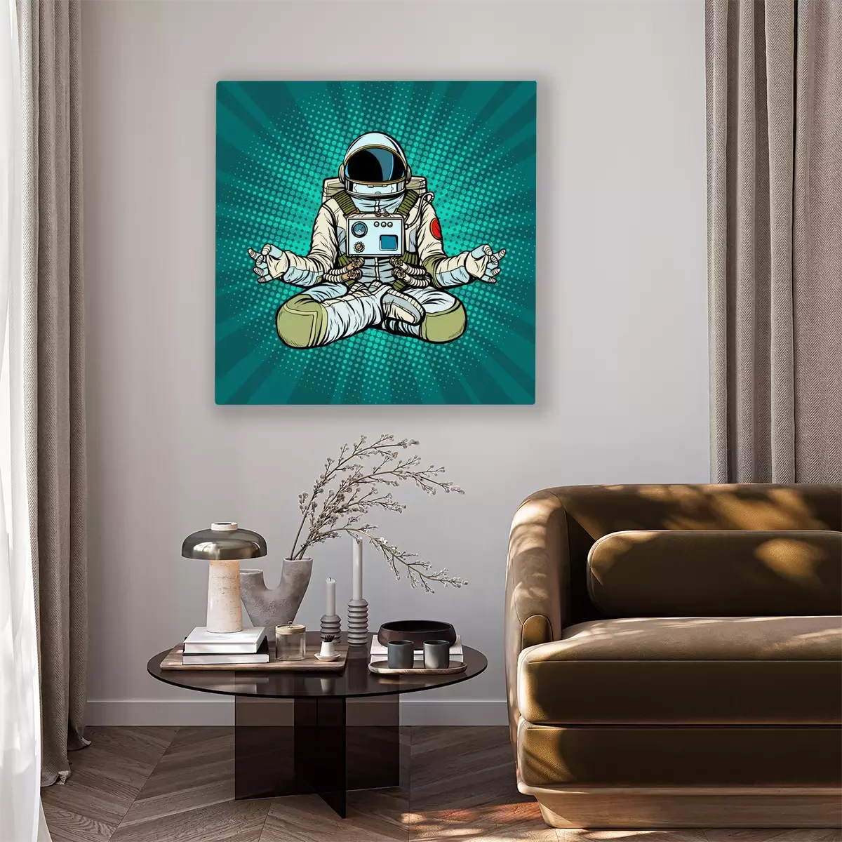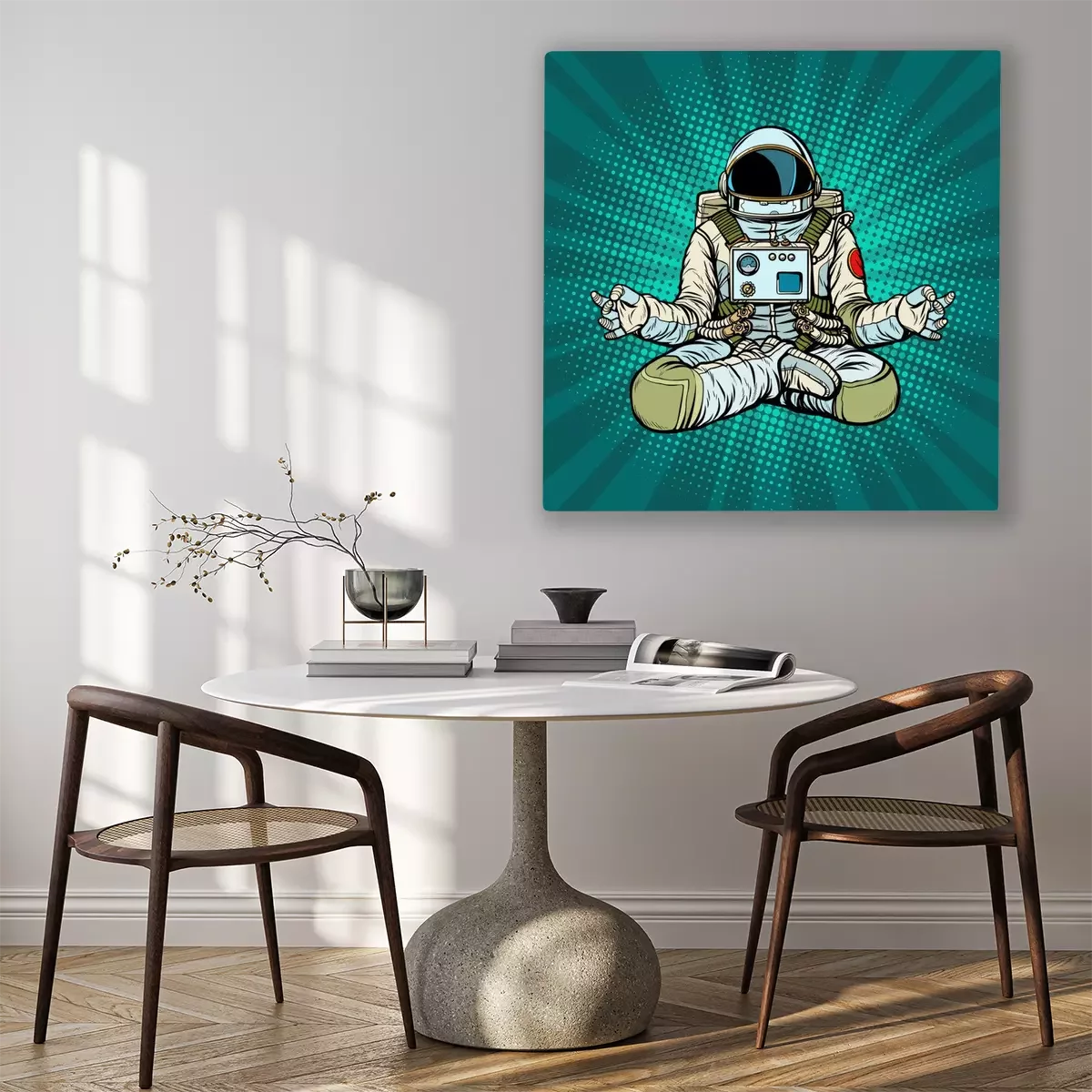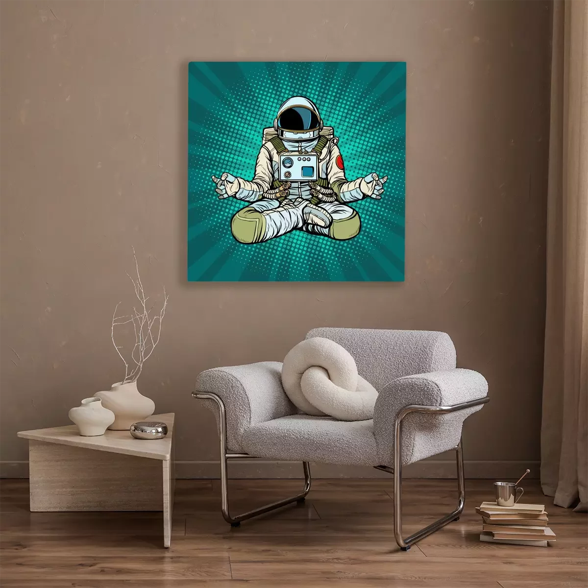 Canvas: yoga-astronaut Lotus pose. Meditatie en spirituele oefening