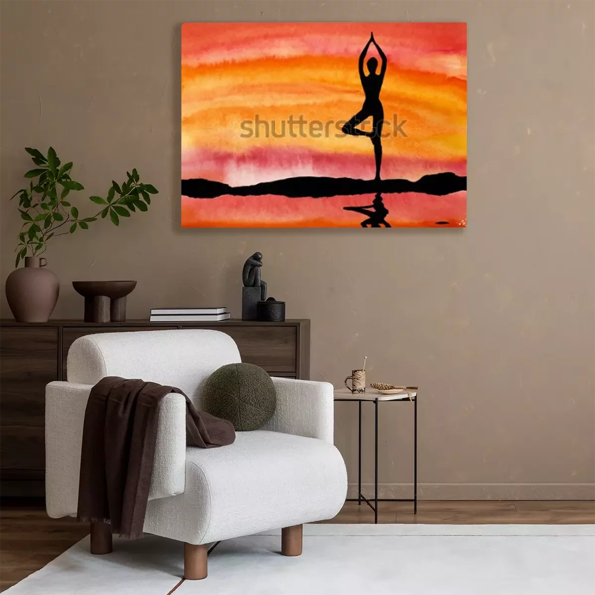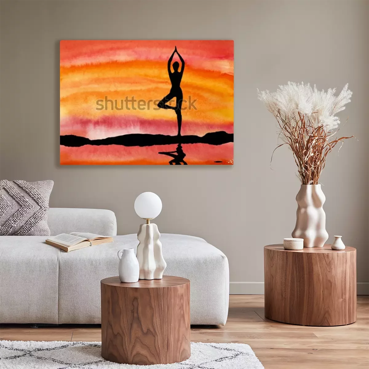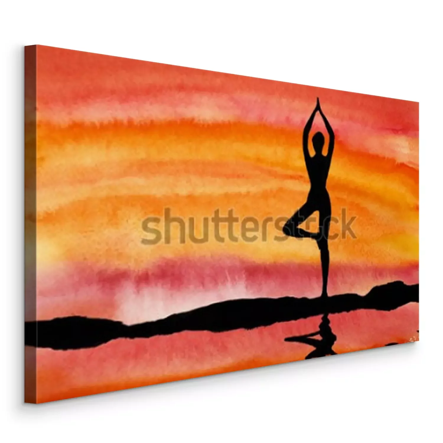 Canvas: Yoga bij zonsondergang op een achtergrond van water