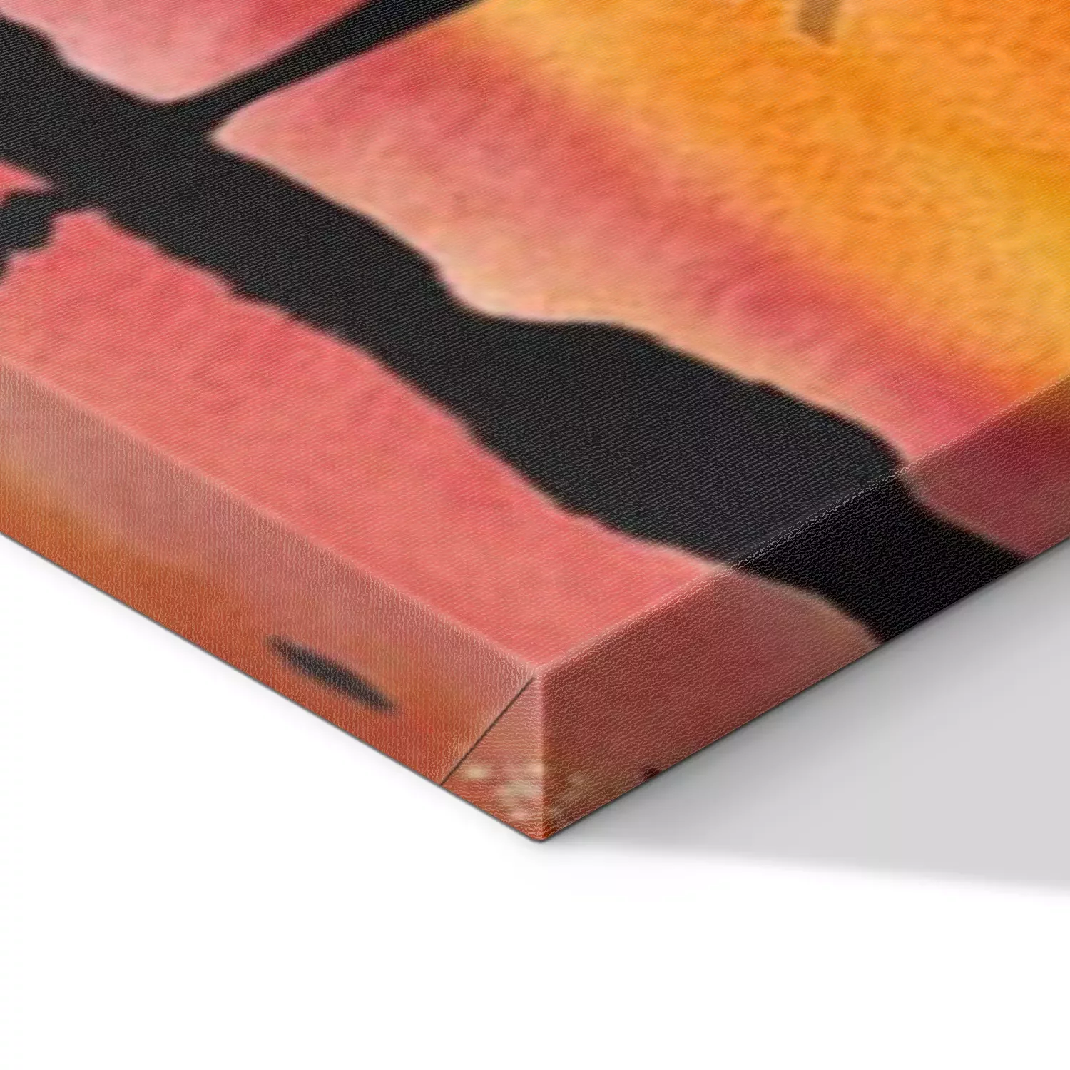 De print wordt aangebracht op hoogwaardig canvas dat op een schildersweefgetouw (spieraam) wordt gespannen. Omdat de print de zijranden bedekt, hoeft het ontwerp niet met een extra kader te worden omlijst. Wij raden ook composities aan die uit meerdere foto's bestaan en zo een coherente compositie vormen.