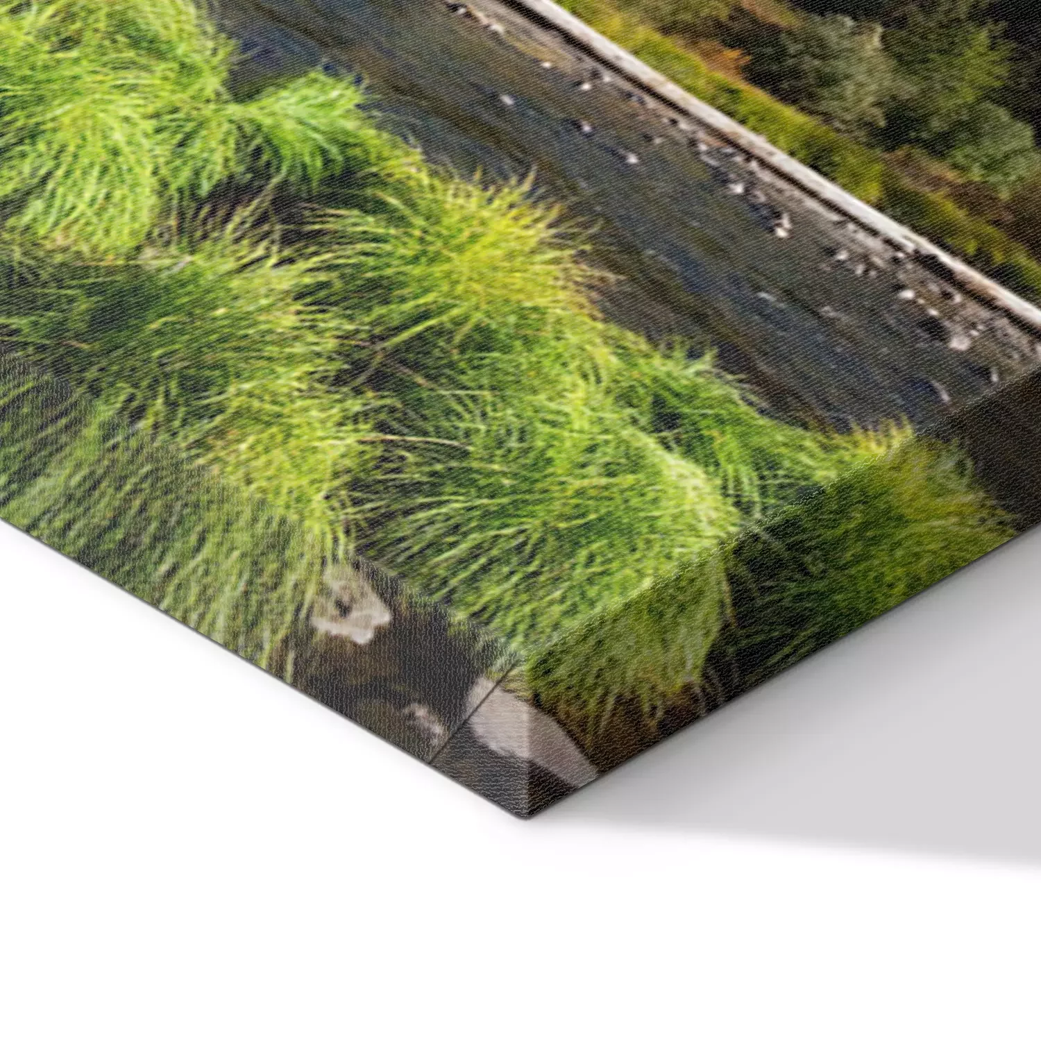 De print wordt aangebracht op hoogwaardig canvas dat op een schildersweefgetouw (spieraam) wordt gespannen. Omdat de print de zijranden bedekt, hoeft het ontwerp niet met een extra kader te worden omlijst. Wij raden ook composities aan die uit meerdere foto's bestaan en zo een coherente compositie vormen.