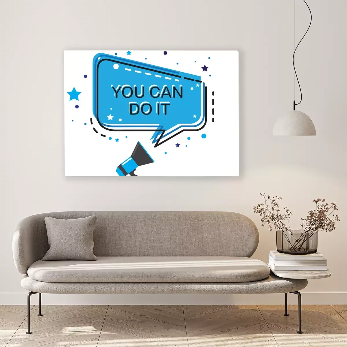 Canvas You can do it. megaphone and slogan flat vector, banner, graphic.