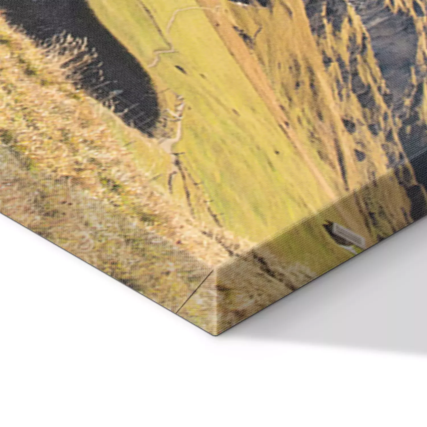 De print wordt aangebracht op hoogwaardig canvas dat op een schildersweefgetouw (spieraam) wordt gespannen. Omdat de print de zijranden bedekt, hoeft het ontwerp niet met een extra kader te worden omlijst. Wij raden ook composities aan die uit meerdere foto's bestaan en zo een coherente compositie vormen.