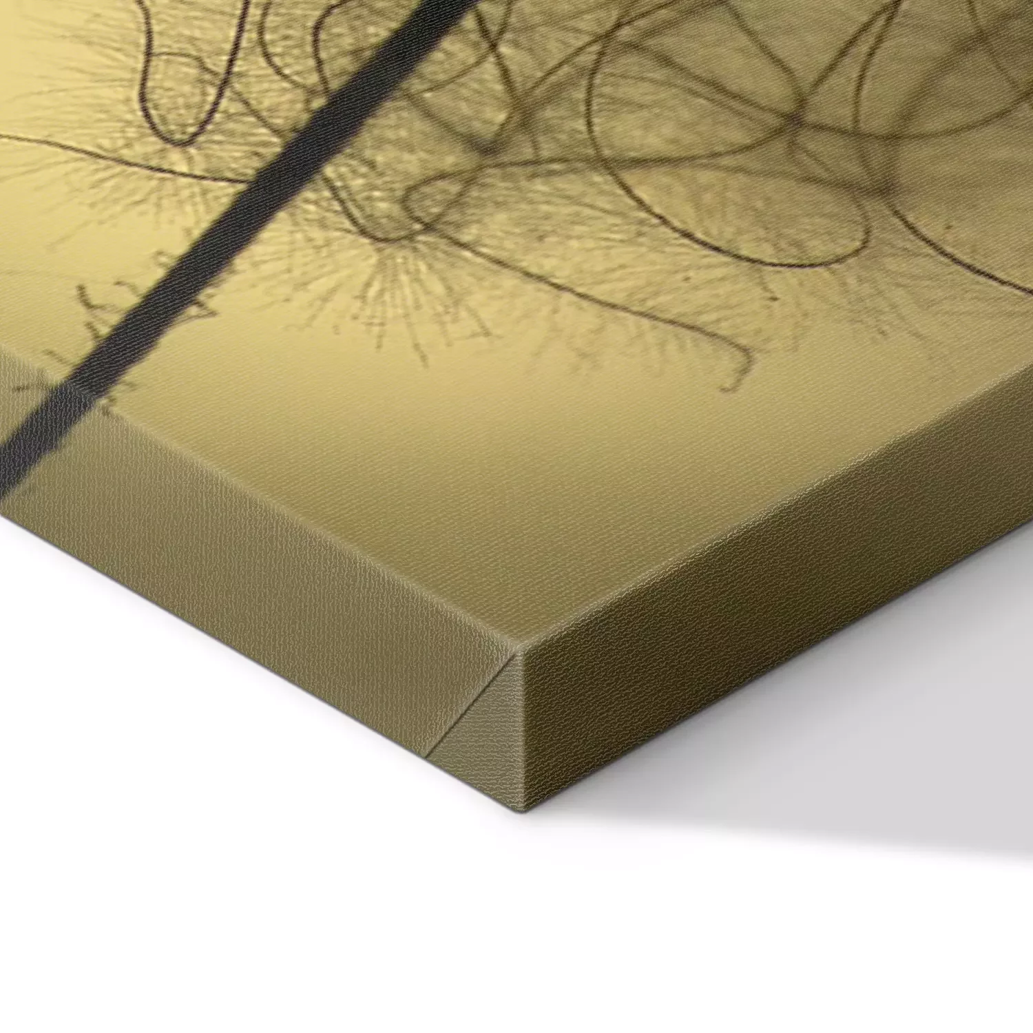 De print wordt aangebracht op hoogwaardig canvas dat op een schildersweefgetouw (spieraam) wordt gespannen. Omdat de print de zijranden bedekt, hoeft het ontwerp niet met een extra kader te worden omlijst. Wij raden ook composities aan die uit meerdere foto's bestaan en zo een coherente compositie vormen.