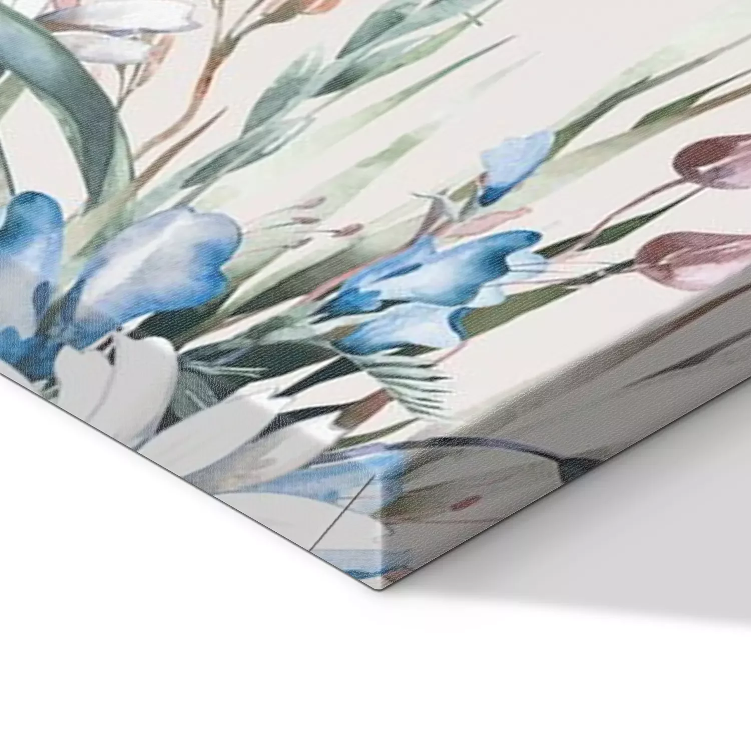 De print wordt aangebracht op hoogwaardig canvas dat op een schildersweefgetouw (spieraam) wordt gespannen. Omdat de print de zijranden bedekt, hoeft het ontwerp niet met een extra kader te worden omlijst. Wij raden ook composities aan die uit meerdere foto's bestaan en zo een coherente compositie vormen.