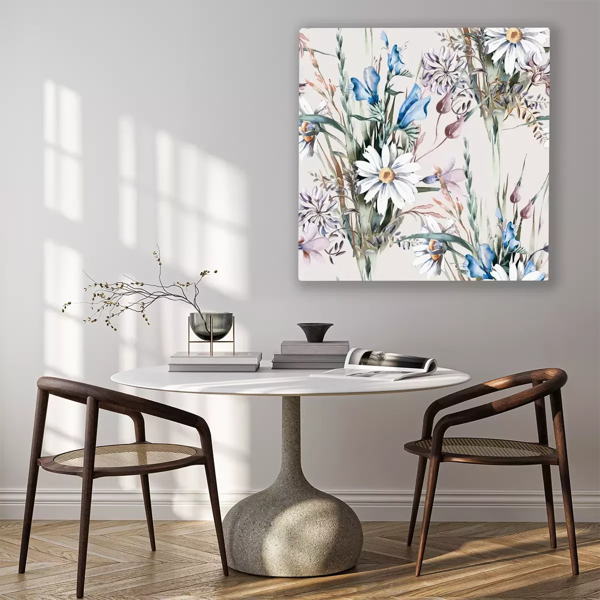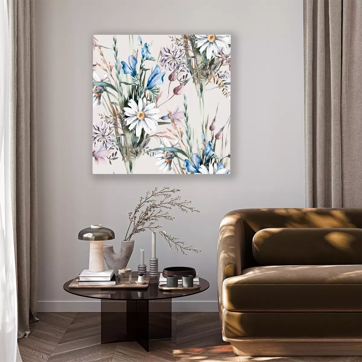 Canvas: Zachte veldbloemen op de beige achtergrond