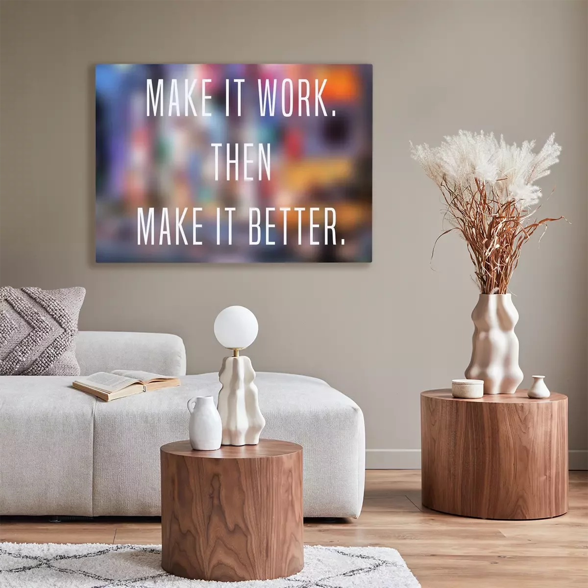 De print wordt aangebracht op hoogwaardig canvas dat op een schildersweefgetouw (spieraam) wordt gespannen. Omdat de print de zijranden bedekt, hoeft het ontwerp niet met een extra kader te worden omlijst. Wij raden ook composities aan die uit meerdere foto's bestaan en zo een coherente compositie vormen.