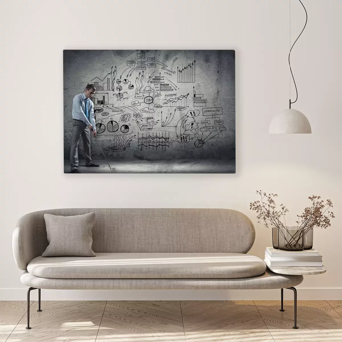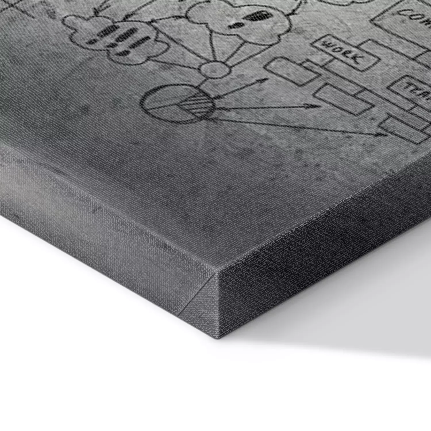 De print wordt aangebracht op hoogwaardig canvas dat op een schildersweefgetouw (spieraam) wordt gespannen. Omdat de print de zijranden bedekt, hoeft het ontwerp niet met een extra kader te worden omlijst. Wij raden ook composities aan die uit meerdere foto's bestaan en zo een coherente compositie vormen.