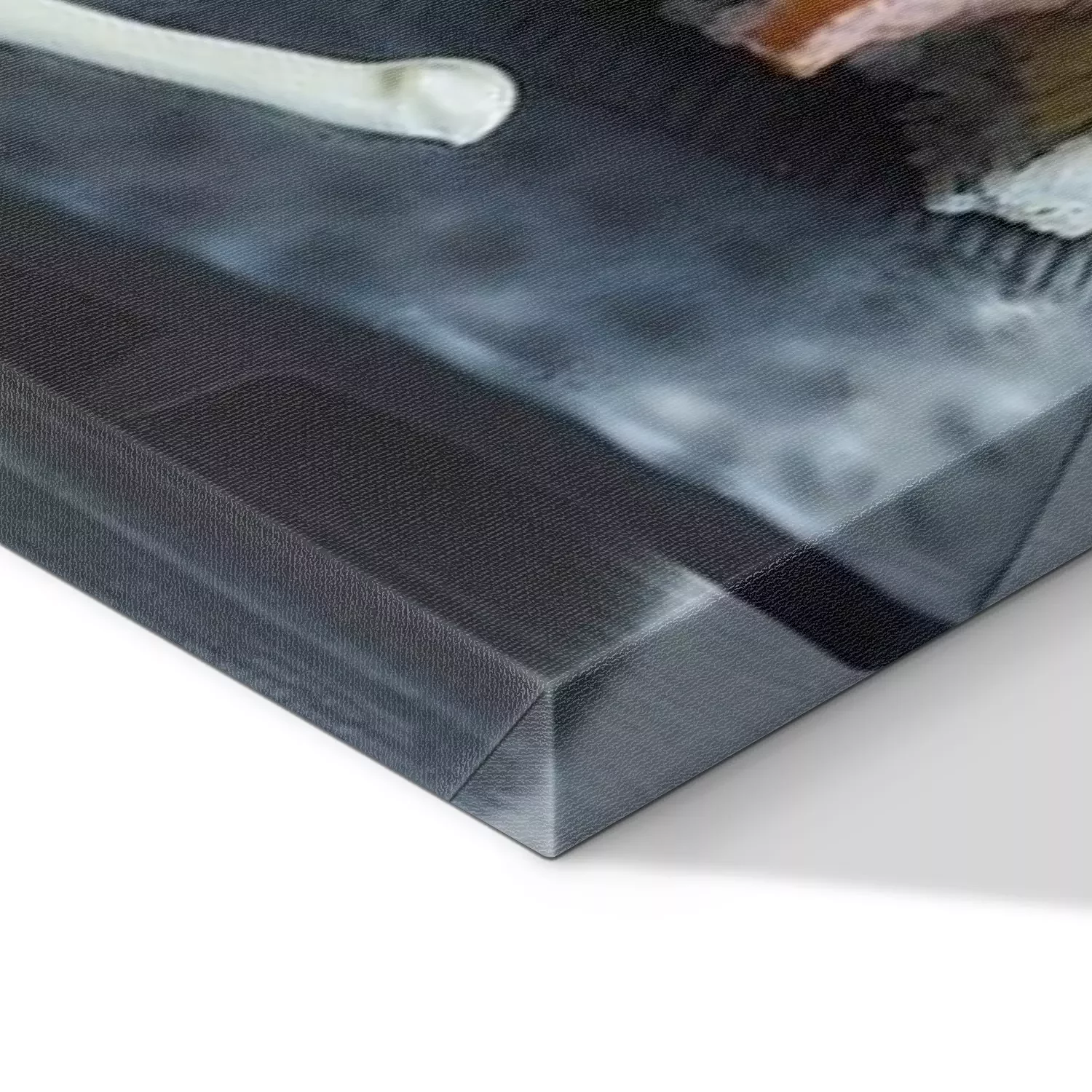 De print wordt aangebracht op hoogwaardig canvas dat op een schildersweefgetouw (spieraam) wordt gespannen. Omdat de print de zijranden bedekt, hoeft het ontwerp niet met een extra kader te worden omlijst. Wij raden ook composities aan die uit meerdere foto's bestaan en zo een coherente compositie vormen.
