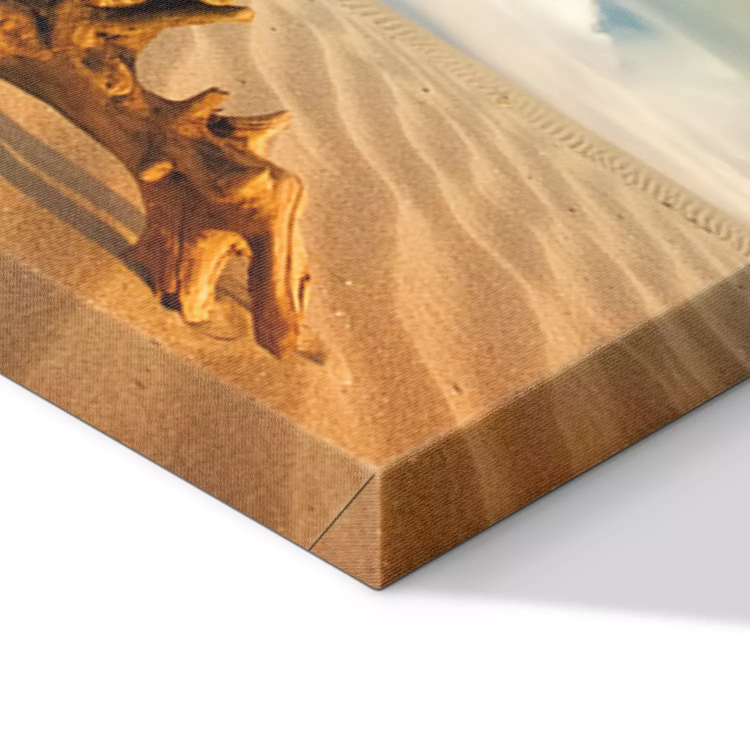De print wordt aangebracht op hoogwaardig canvas dat op een schildersweefgetouw (spieraam) wordt gespannen. Omdat de print de zijranden bedekt, hoeft het ontwerp niet met een extra kader te worden omlijst. Wij raden ook composities aan die uit meerdere foto's bestaan en zo een coherente compositie vormen.