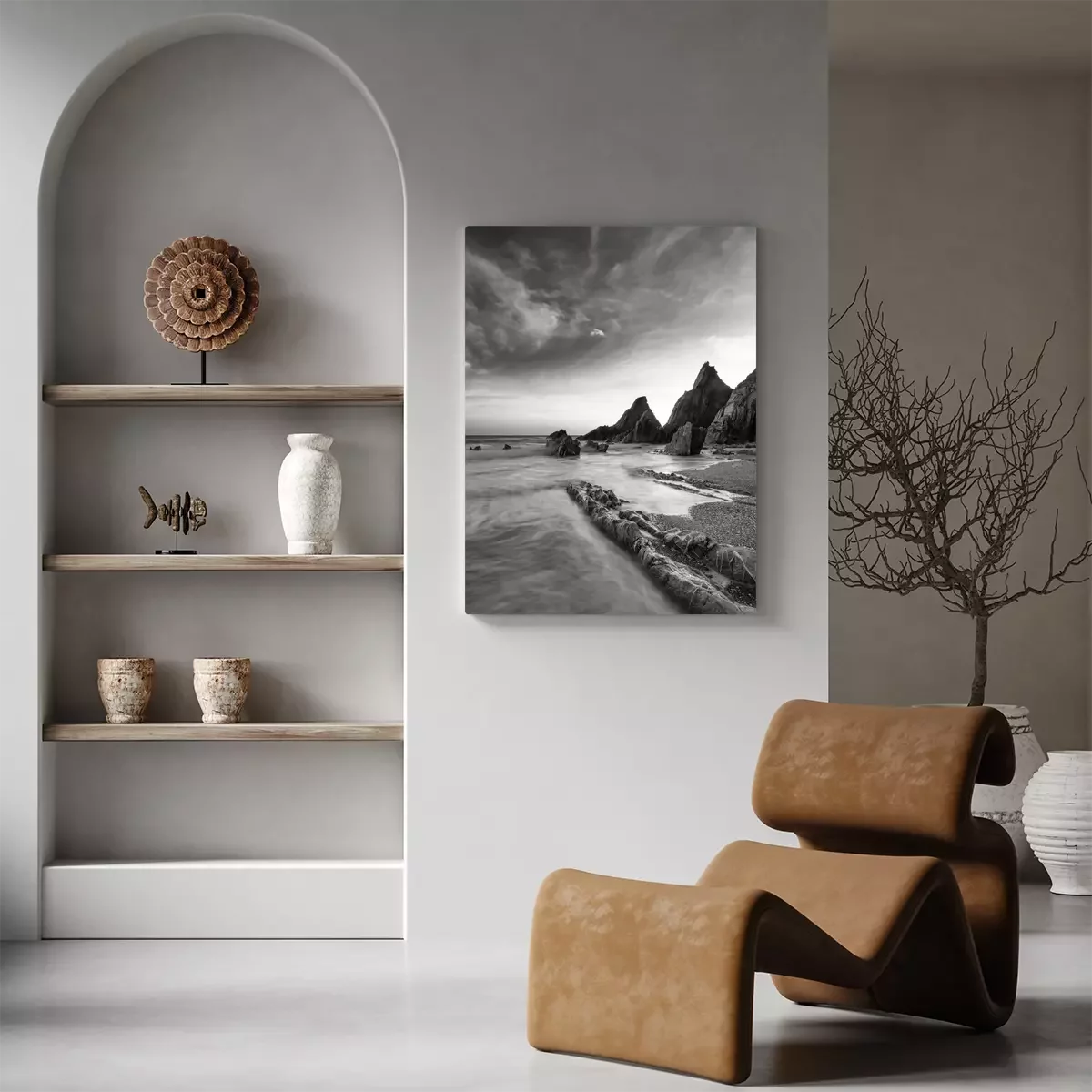 De print wordt aangebracht op hoogwaardig canvas dat op een schildersweefgetouw (spieraam) wordt gespannen. Omdat de print de zijranden bedekt, hoeft het ontwerp niet met een extra kader te worden omlijst. Wij raden ook composities aan die uit meerdere foto's bestaan en zo een coherente compositie vormen.