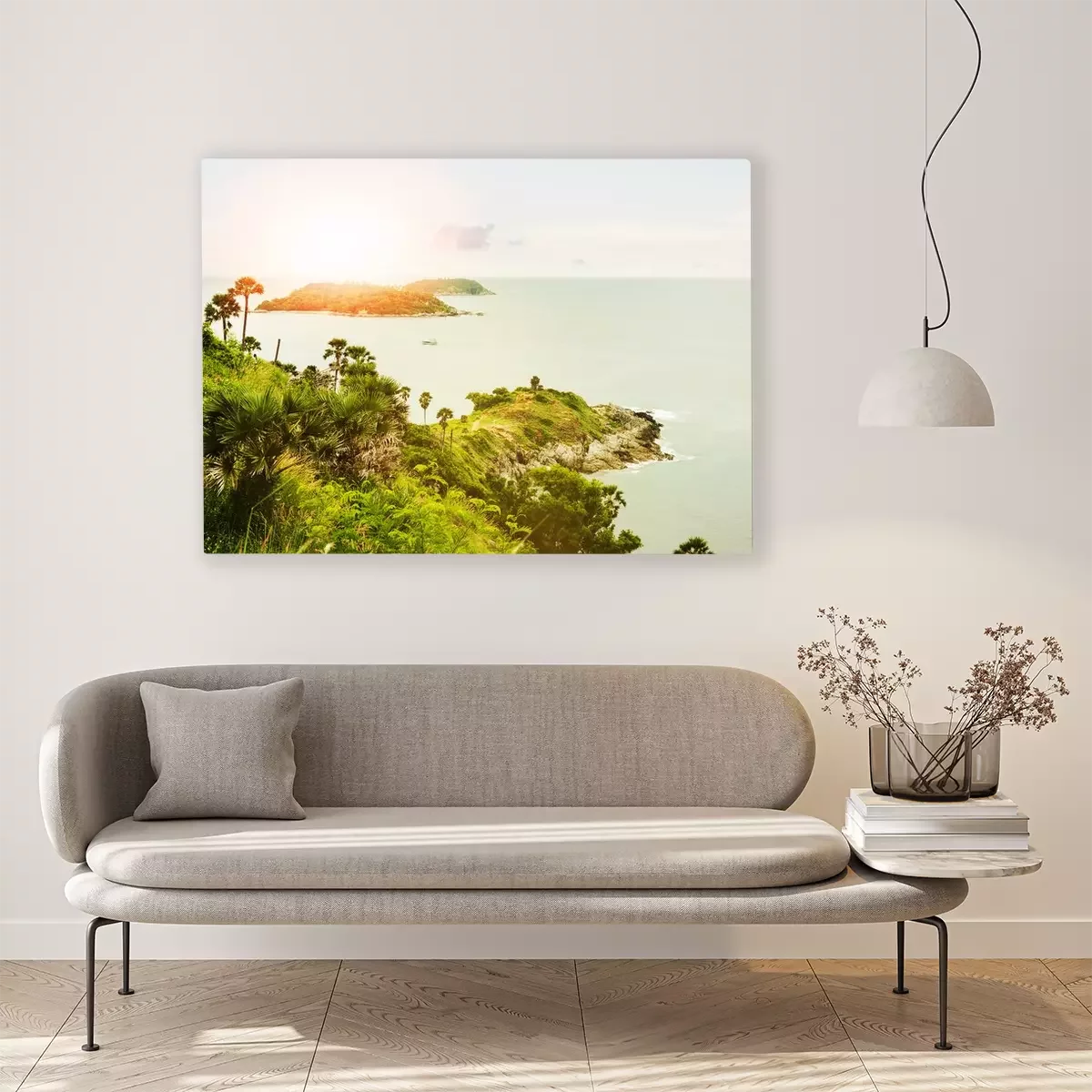 Canvas: Zee met eiland in de ochtend licht en over licht