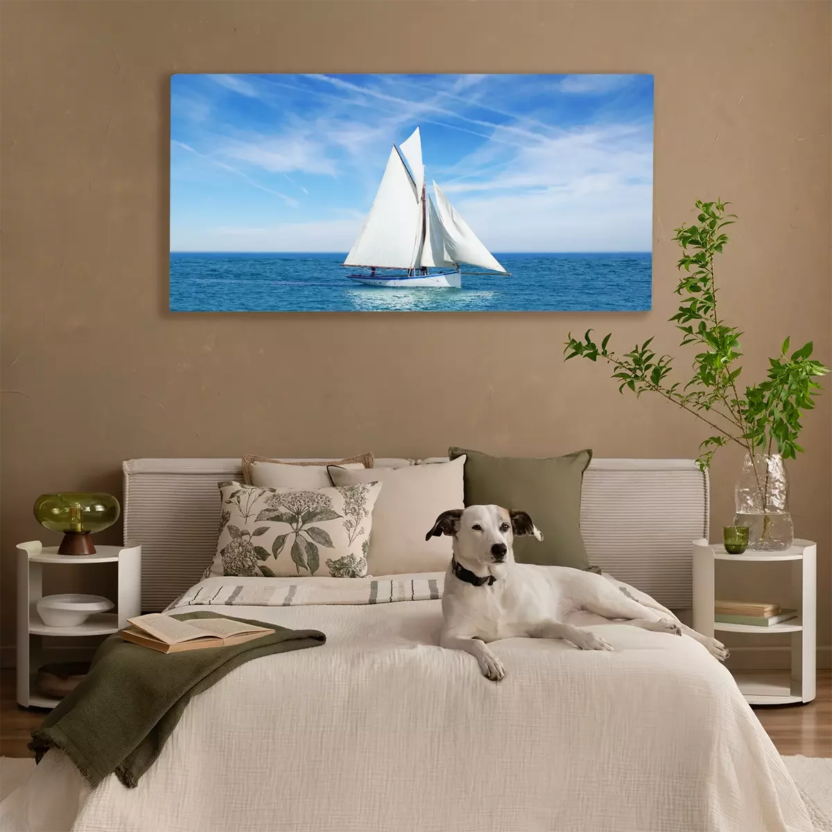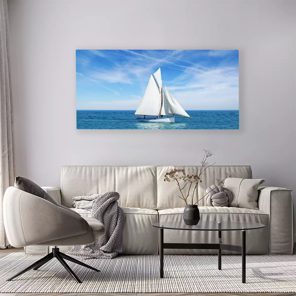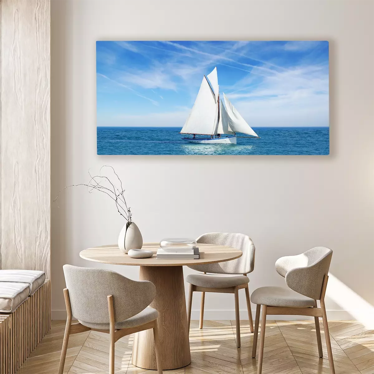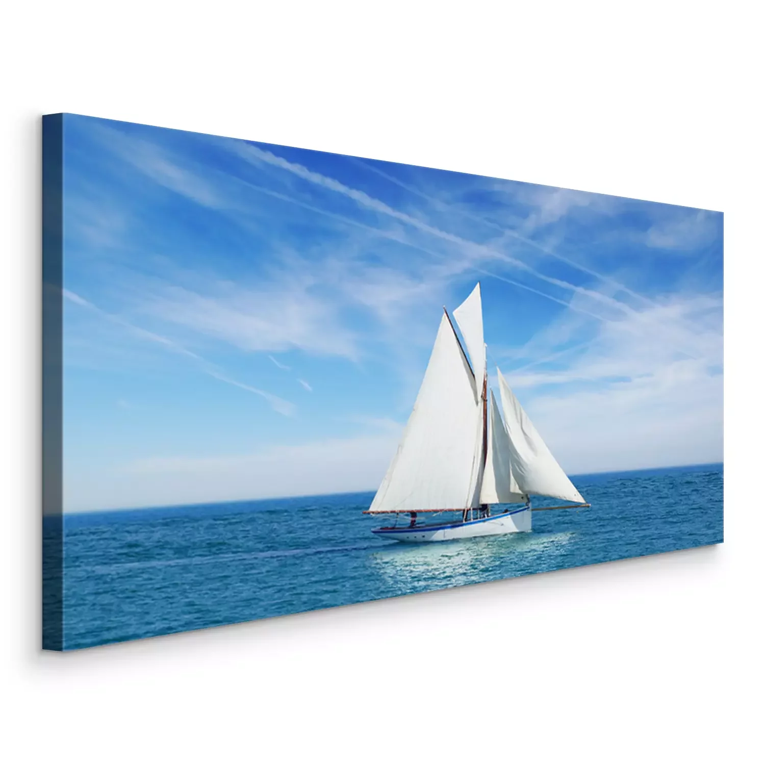 Canvas: Zeegezicht met zeilboot de achtergrond van de blauwe hemel.