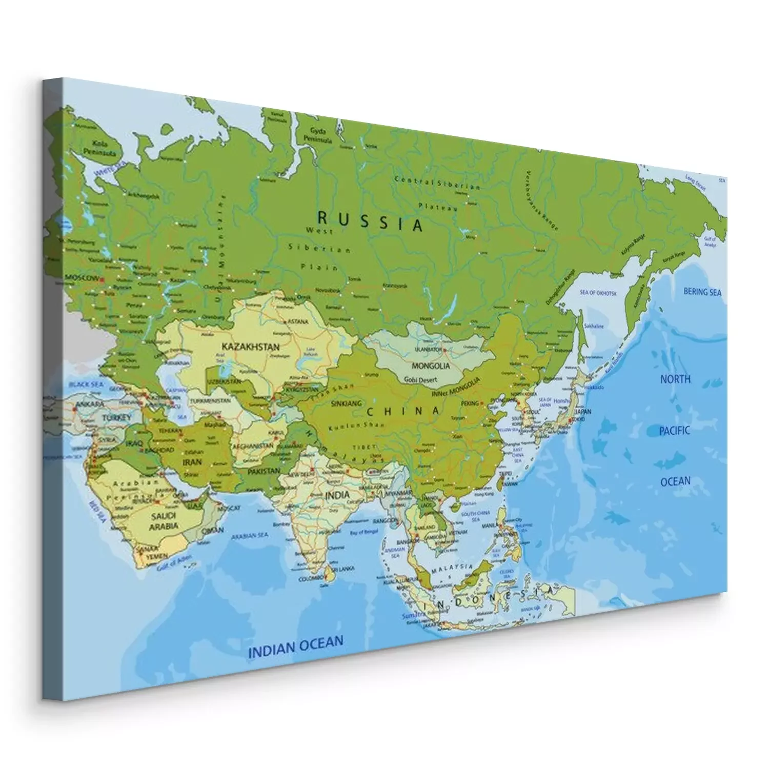 Canvas Zeer gedetailleerde bewerkbare politieke kaart. Asia.