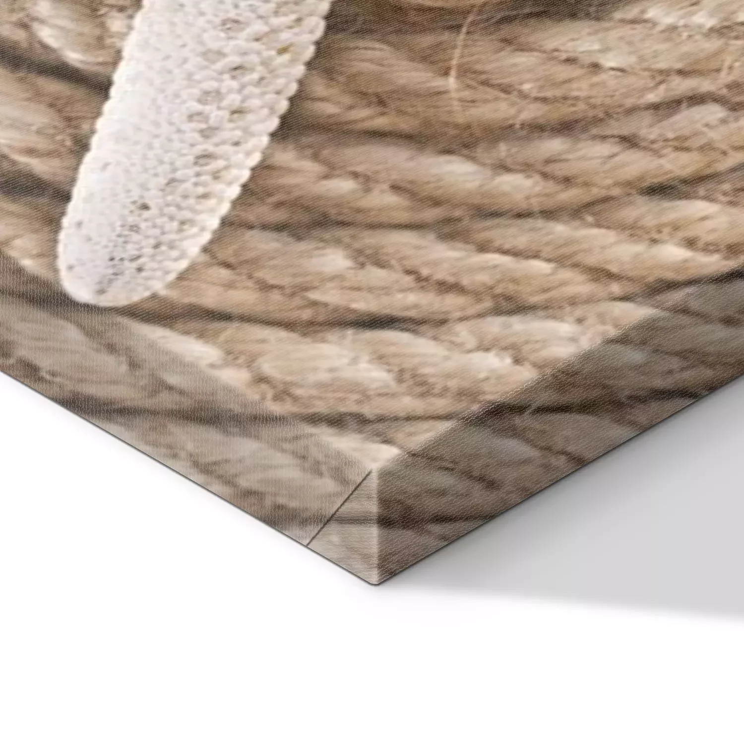 De print wordt aangebracht op hoogwaardig canvas dat op een schildersweefgetouw (spieraam) wordt gespannen. Omdat de print de zijranden bedekt, hoeft het ontwerp niet met een extra kader te worden omlijst. Wij raden ook composities aan die uit meerdere foto's bestaan en zo een coherente compositie vormen.