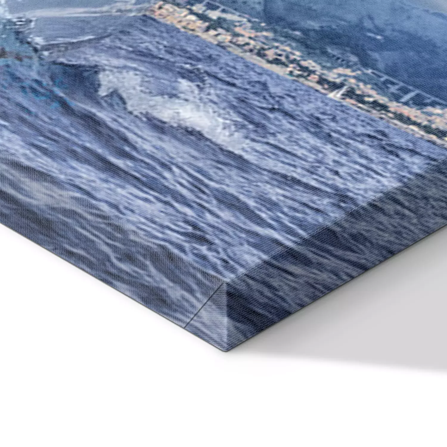 De print wordt aangebracht op hoogwaardig canvas dat op een schildersweefgetouw (spieraam) wordt gespannen. Omdat de print de zijranden bedekt, hoeft het ontwerp niet met een extra kader te worden omlijst. Wij raden ook composities aan die uit meerdere foto's bestaan en zo een coherente compositie vormen.