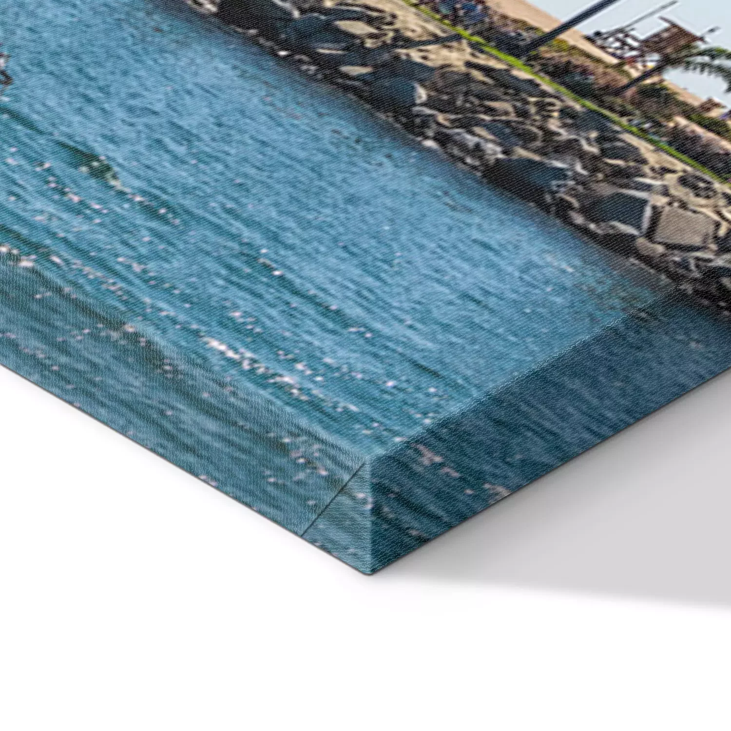 De print wordt aangebracht op hoogwaardig canvas dat op een schildersweefgetouw (spieraam) wordt gespannen. Omdat de print de zijranden bedekt, hoeft het ontwerp niet met een extra kader te worden omlijst. Wij raden ook composities aan die uit meerdere foto's bestaan en zo een coherente compositie vormen.