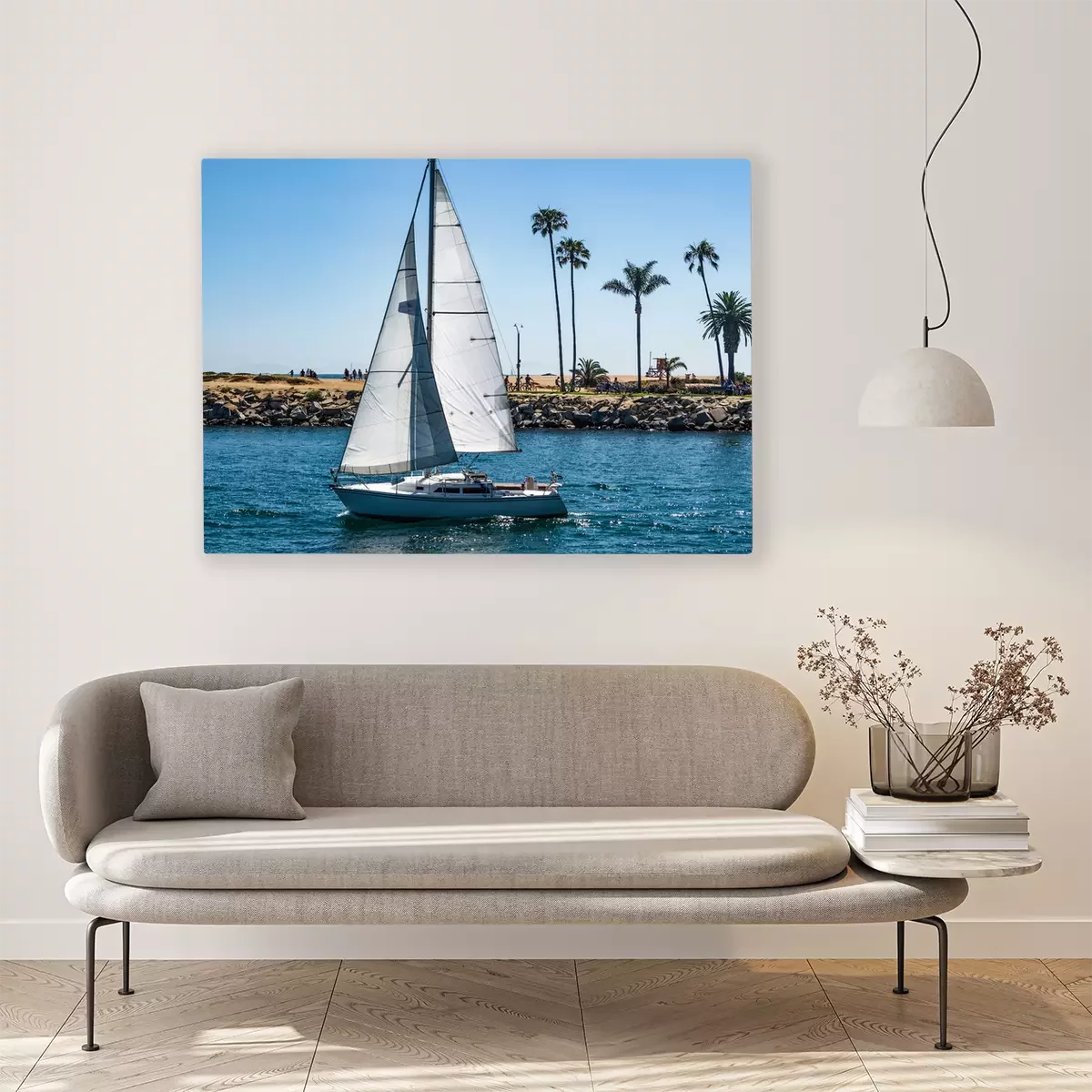 Canvas Zeilboten in de haven van Balboa Island, Newport Beach Californië
