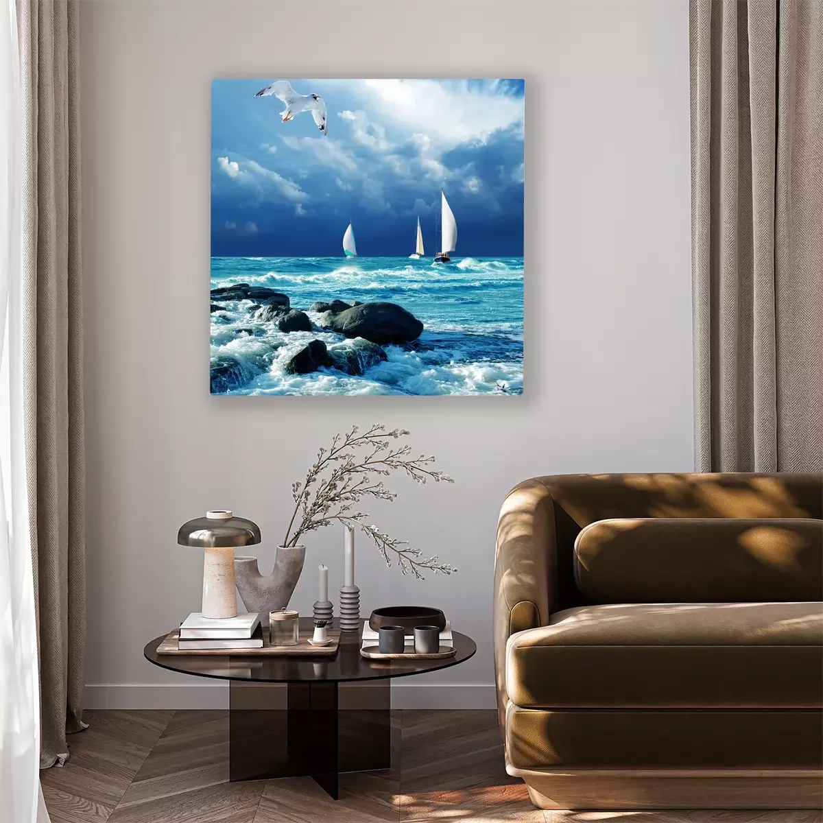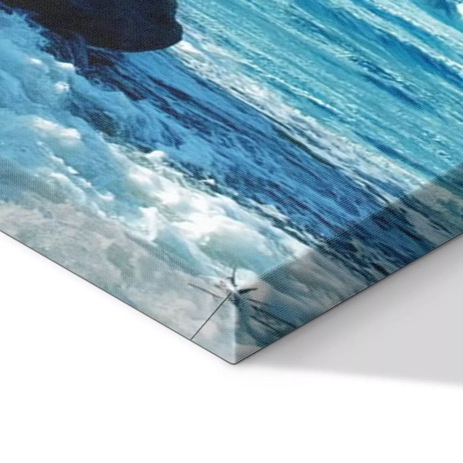 De print wordt aangebracht op hoogwaardig canvas dat op een schildersweefgetouw (spieraam) wordt gespannen. Omdat de print de zijranden bedekt, hoeft het ontwerp niet met een extra kader te worden omlijst. Wij raden ook composities aan die uit meerdere foto's bestaan en zo een coherente compositie vormen.