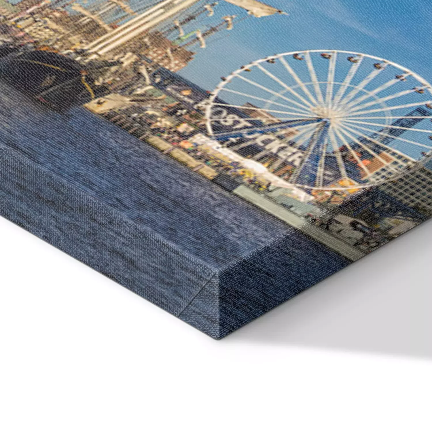 De print wordt aangebracht op hoogwaardig canvas dat op een schildersweefgetouw (spieraam) wordt gespannen. Omdat de print de zijranden bedekt, hoeft het ontwerp niet met een extra kader te worden omlijst. Wij raden ook composities aan die uit meerdere foto's bestaan en zo een coherente compositie vormen.
