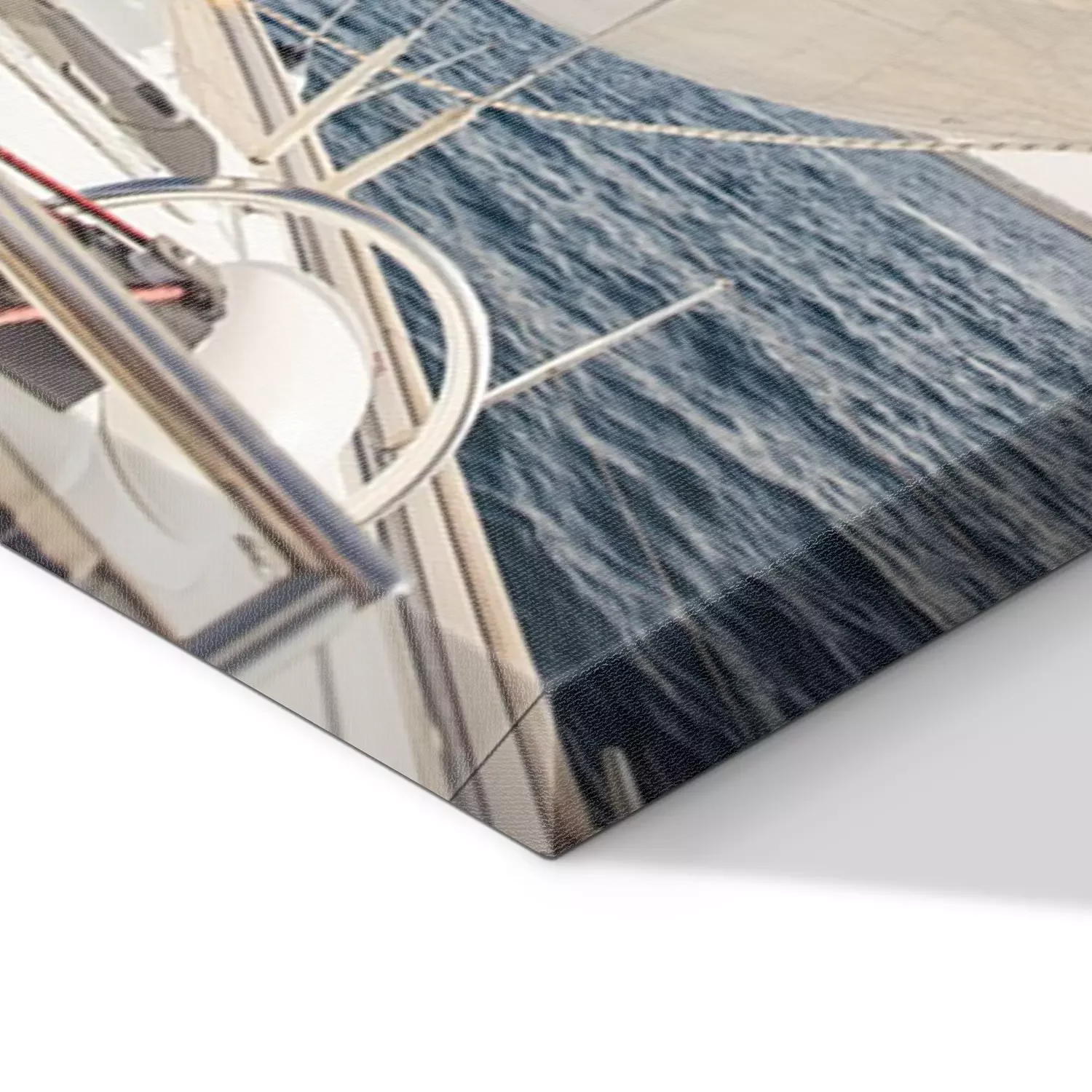 De print wordt aangebracht op hoogwaardig canvas dat op een schildersweefgetouw (spieraam) wordt gespannen. Omdat de print de zijranden bedekt, hoeft het ontwerp niet met een extra kader te worden omlijst. Wij raden ook composities aan die uit meerdere foto's bestaan en zo een coherente compositie vormen.