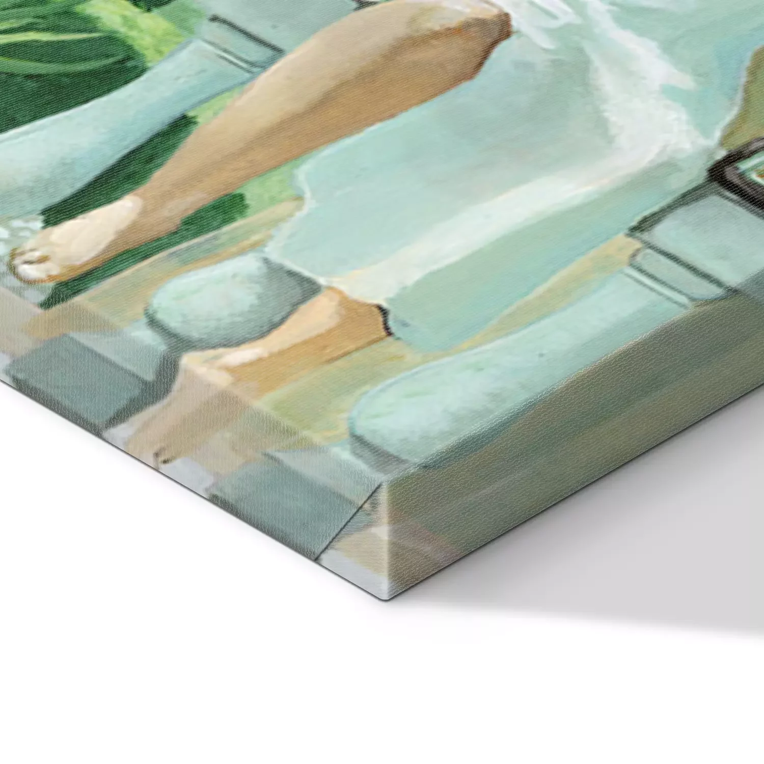 De print wordt aangebracht op hoogwaardig canvas dat op een schildersweefgetouw (spieraam) wordt gespannen. Omdat de print de zijranden bedekt, hoeft het ontwerp niet met een extra kader te worden omlijst. Wij raden ook composities aan die uit meerdere foto's bestaan en zo een coherente compositie vormen.