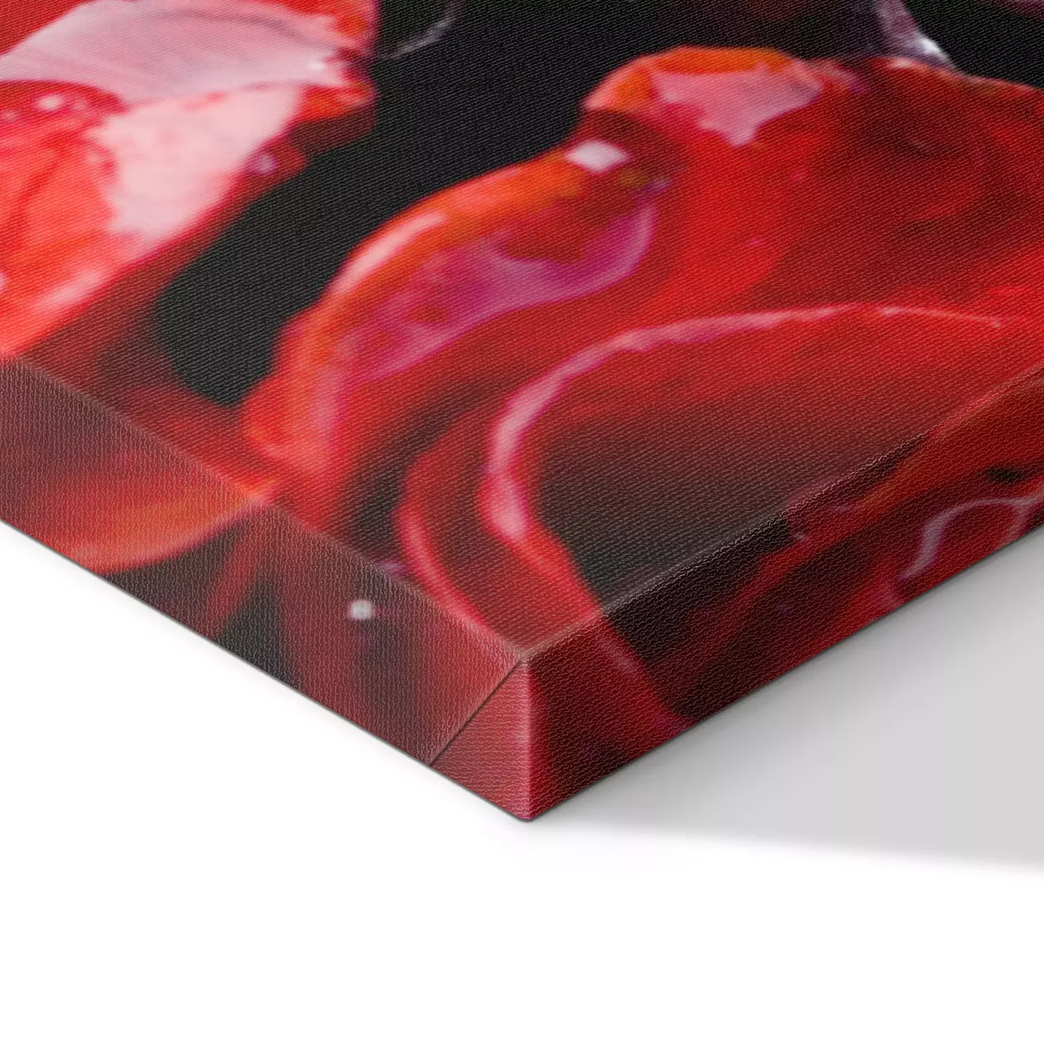 De print wordt aangebracht op hoogwaardig canvas dat op een schildersweefgetouw (spieraam) wordt gespannen. Omdat de print de zijranden bedekt, hoeft het ontwerp niet met een extra kader te worden omlijst. Wij raden ook composities aan die uit meerdere foto's bestaan en zo een coherente compositie vormen.