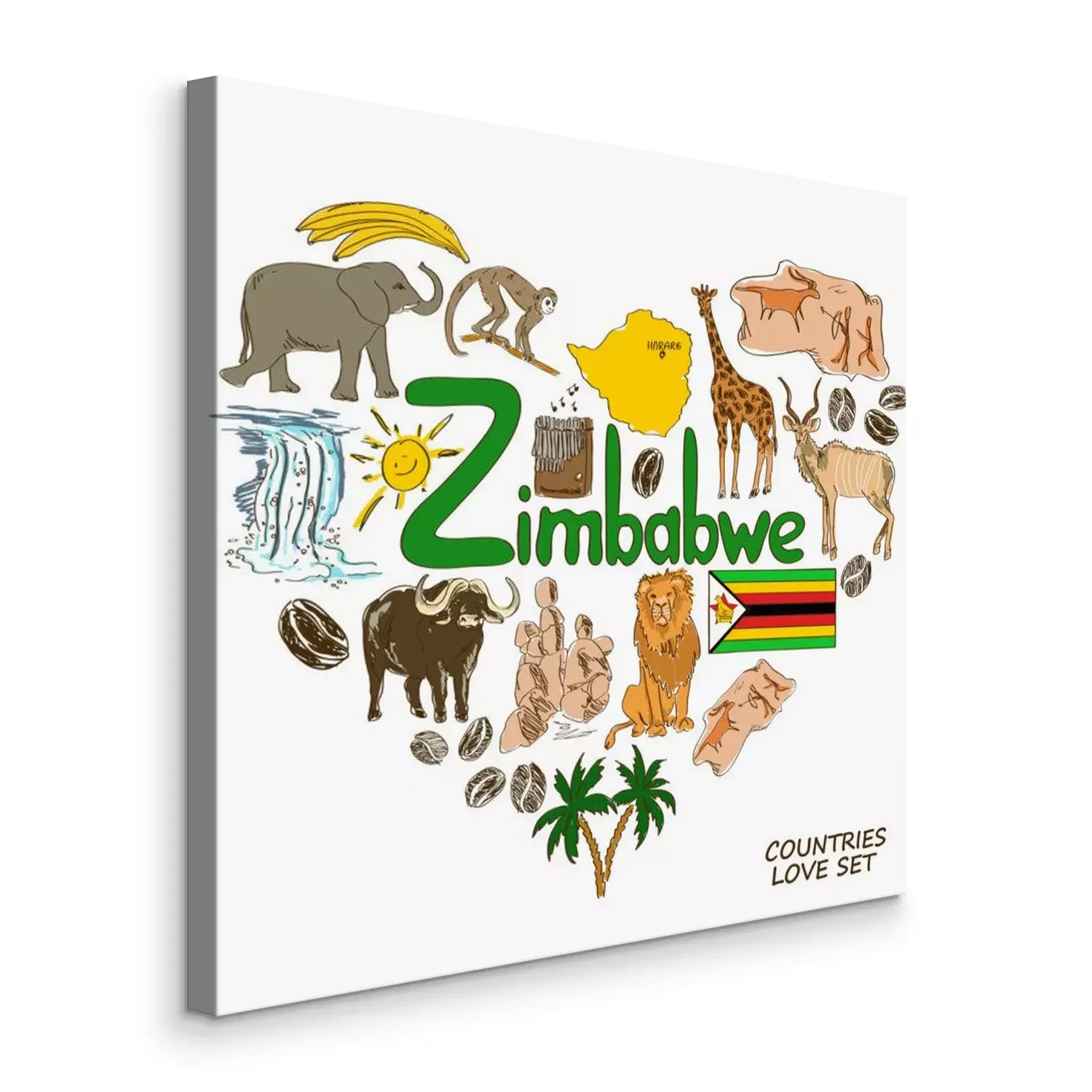 Canvas Zimbabwe symbolen in hartvorm begrip