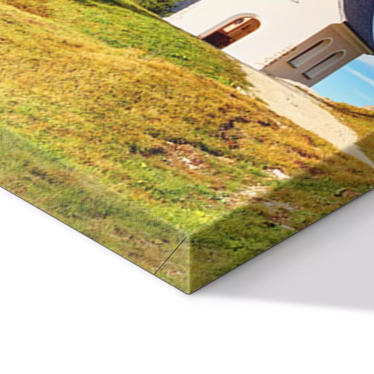De print wordt aangebracht op hoogwaardig canvas dat op een schildersweefgetouw (spieraam) wordt gespannen. Omdat de print de zijranden bedekt, hoeft het ontwerp niet met een extra kader te worden omlijst. Wij raden ook composities aan die uit meerdere foto's bestaan en zo een coherente compositie vormen.